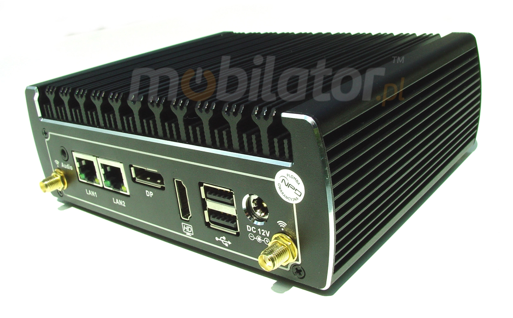 Integrated card - RTL8111E 10/100/1000M and WiFi module allow connection to the network. The computer is equipped with: two LAN ports, one HDMI port, one DP port, two USB 2.0 ports, four USB 3.0 ports, two COM RS232 ports.