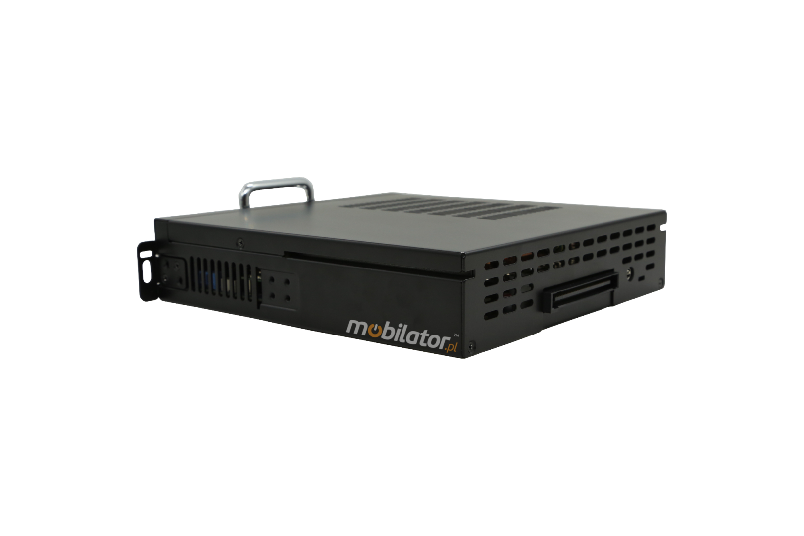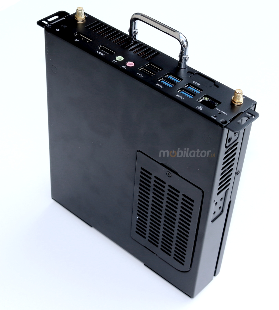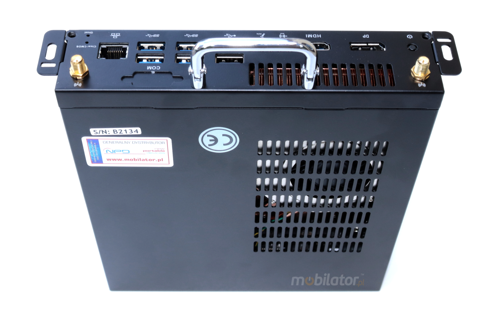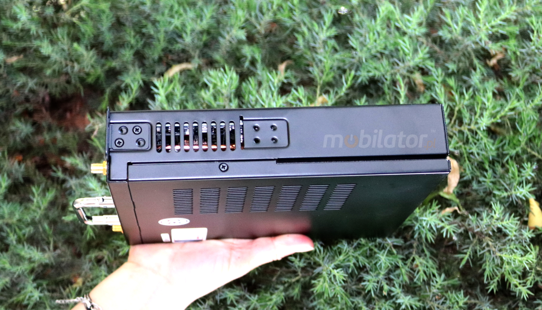 Detailed device specification is available in the "Technical data" tab.The industrial Mini PC uses a proven cooling system, based only on solid elements, mainly heat sinks. The system uses the phenomenon of metals passing thermal energy into the environment through openings in the housing. This solution provides better cooling in relation to pasive cooling.
