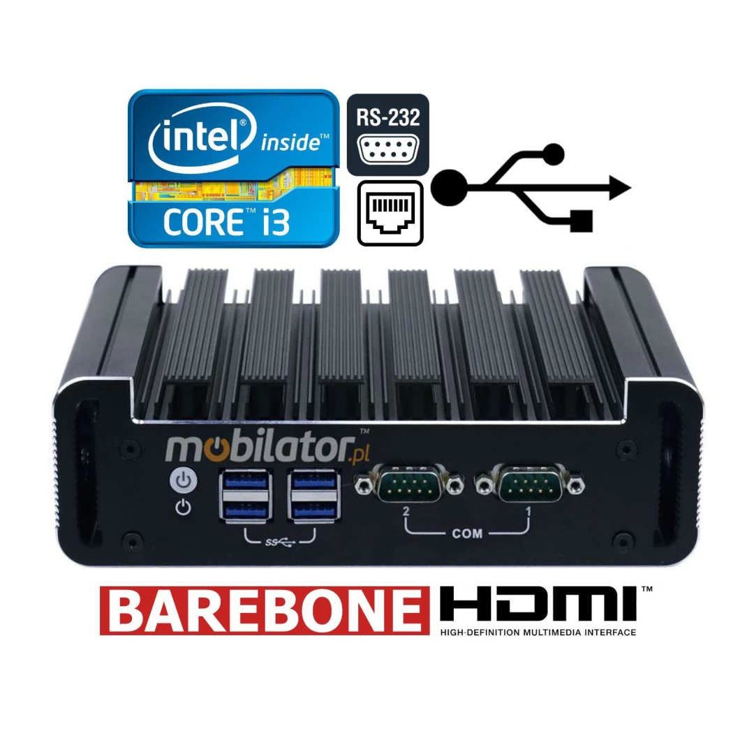 Small dimensions industrial computers excel in environments where dust, dirt and moisture predominate. They are ideal for applications requiring quiet operation. Small and reliable MiniPC use heat-pipe technology and aluminum fins for passive cooling. The robust mini industrial computer IBOX-180 Plus is a device designed for all industrial and non-continuous applications requiring continuous operation - 24 hours, 7 days a week.
