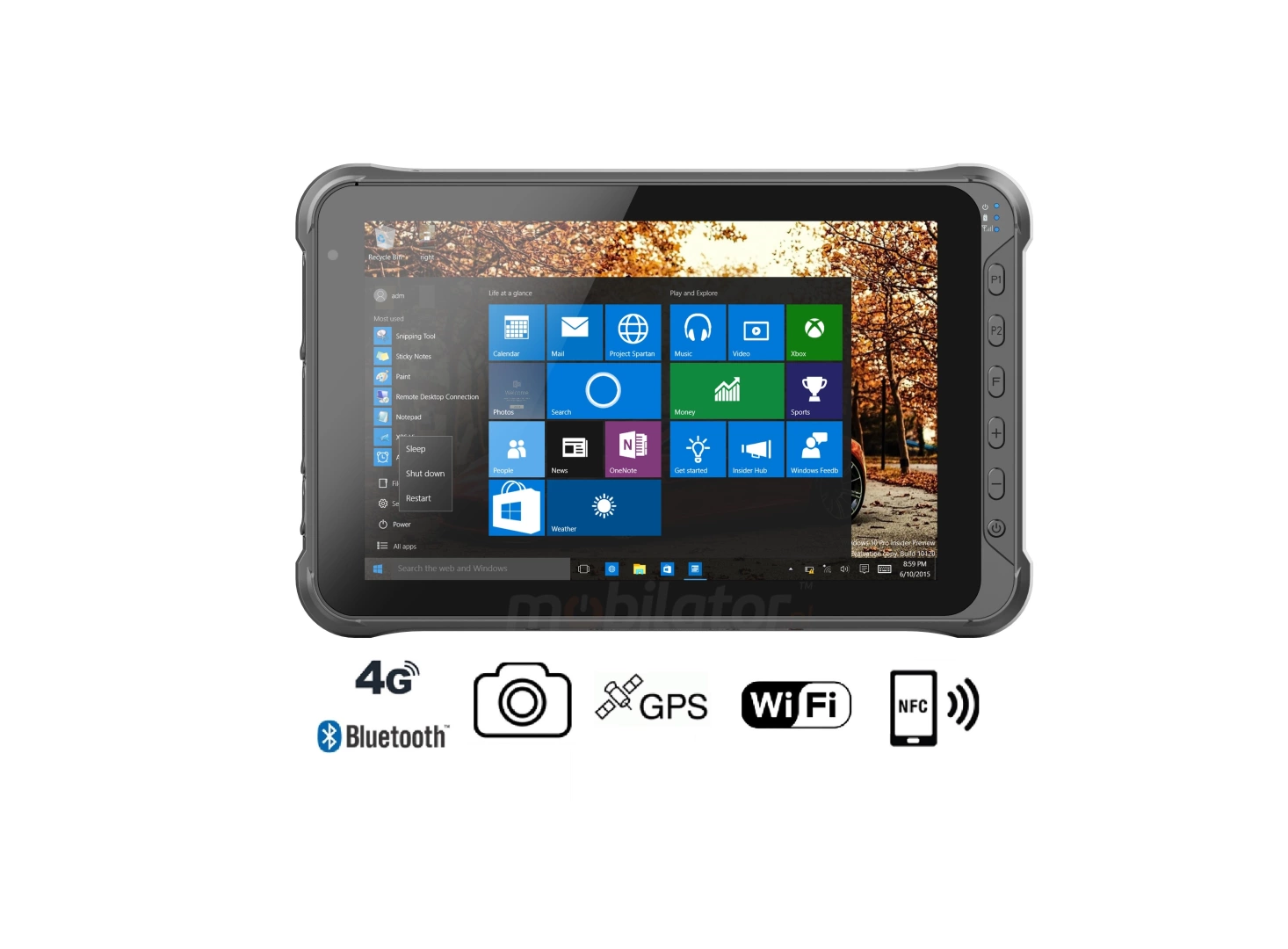 Dustproof industrial tablet Emdoor I15HH was equipped with high performance, energy-efficient Intel Cherry Trail Z8350 (4x1.92GHz) processor. Inside, there are four cores that allow for more efficient processing of multiple tasks simultaneously. Shared caching, which uses a multi-level hierarchy, is dynamically allocated to each processor core according to the load. This reduces the average access time to main memory. Enhanced graphics card technology lets you enjoy full HD video and movies. Low power consumption guarantees long battery life.