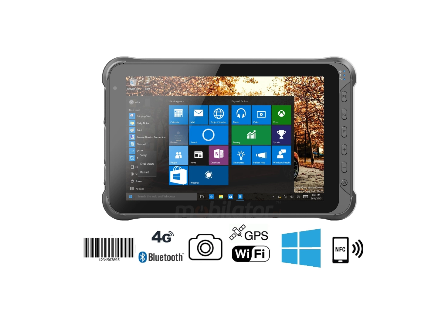 Dustproof industrial tablet Emdoor I15HH was equipped with high performance, energy-efficient Intel Cherry Trail Z8350 (4x1.92GHz) processor. Inside, there are four cores that allow for more efficient processing of multiple tasks simultaneously. Shared caching, which uses a multi-level hierarchy, is dynamically allocated to each processor core according to the load. This reduces the average access time to main memory. Enhanced graphics card technology lets you enjoy full HD video and movies. Low power consumption guarantees long battery life.