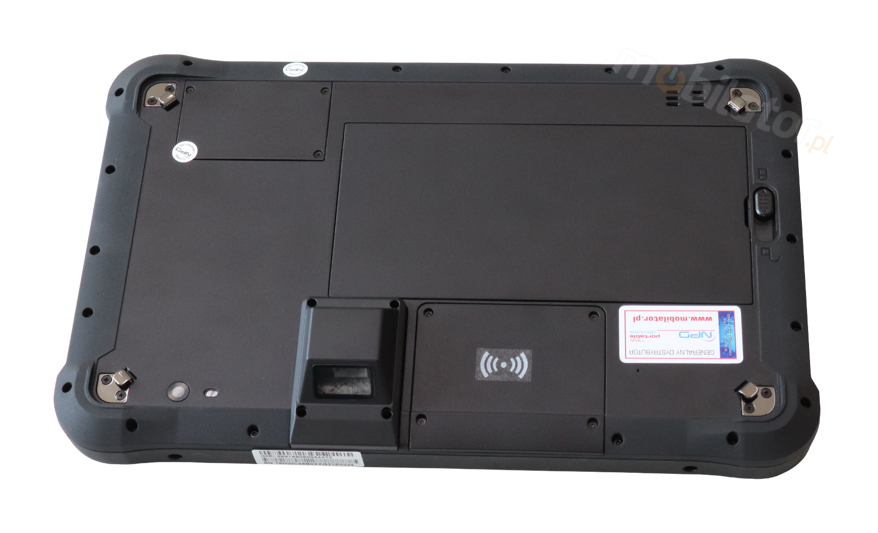 RFID is a technology used to identify objects and control the flow of products. Reading information from special tags that are attached to objects (but not only because RFID is also used to mark animals and even people) is done by radio. Depending on the type of tag, the amount of information it can store changes, as well as the maximum distance from which data can be read. RFID tags are an alternative to barcodes - more convenient and more efficient. Scanners operate at 902-928MHz. This device is equipped with M-550.