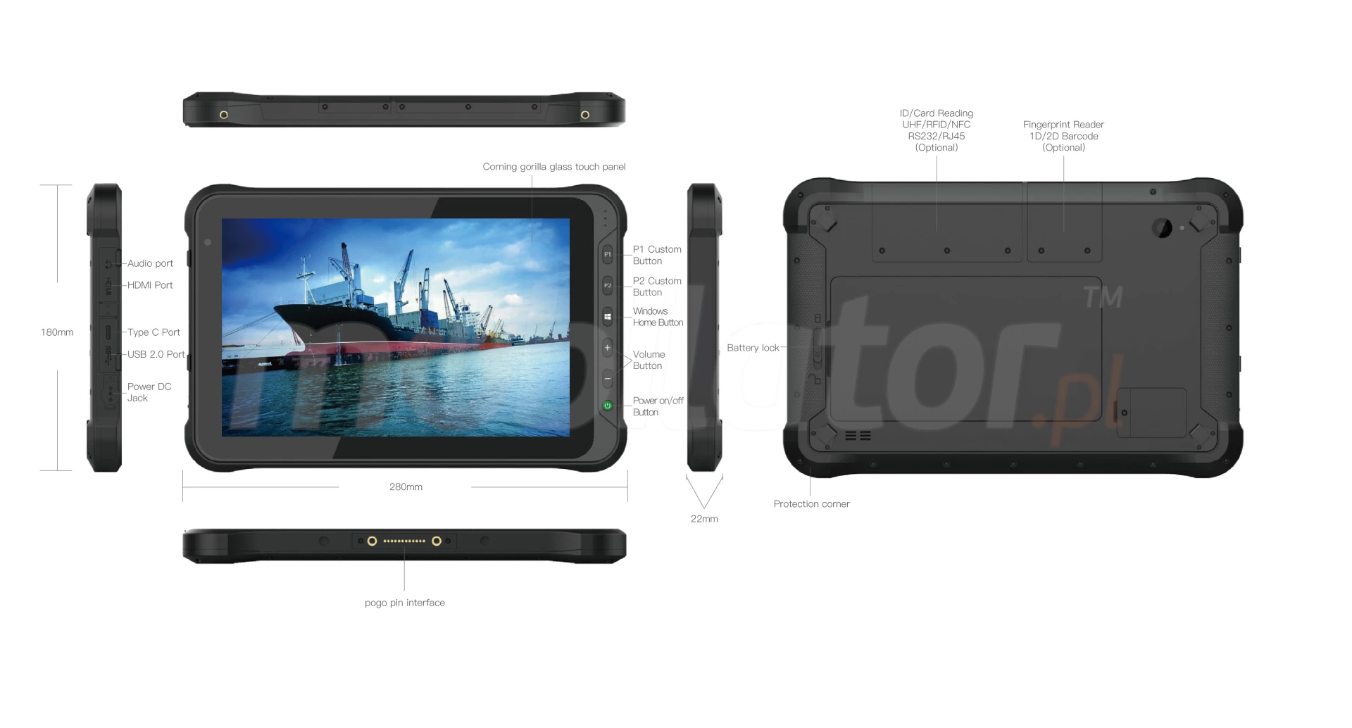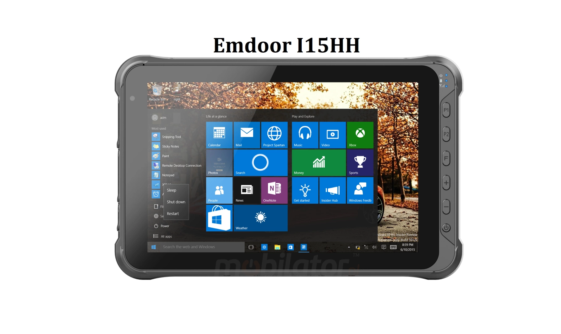 Emdoor I15HH is a modern, waterproof industrial tablet designed for extreme applications. It has a specially designed, reinforced construction that meets the requirements of IP65, which confirms the protection of the device against dust and water.