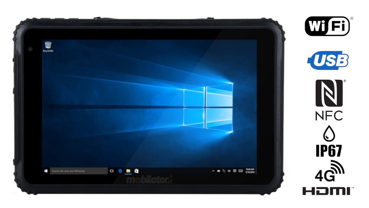 Emdoor I88H is a modern, waterproof industrial tablet designed for extreme applications. It has a specially designed, reinforced construction that meets the requirements of IP67, which confirms the protection of the device against dust and water.