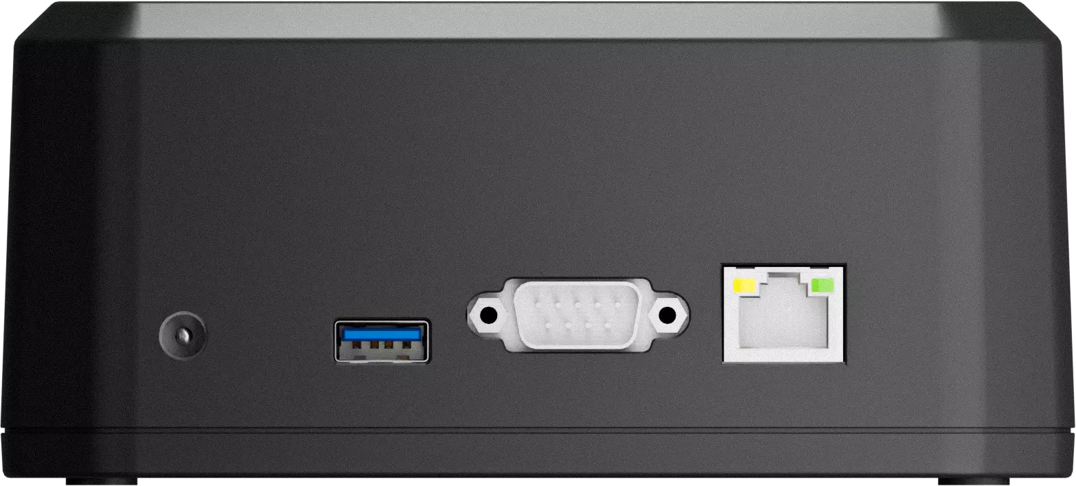 This docking station allows for use of 4 interfaces: 1x RJ-45 (LAN), 1x COM, 1x USB, 1x USB-C.