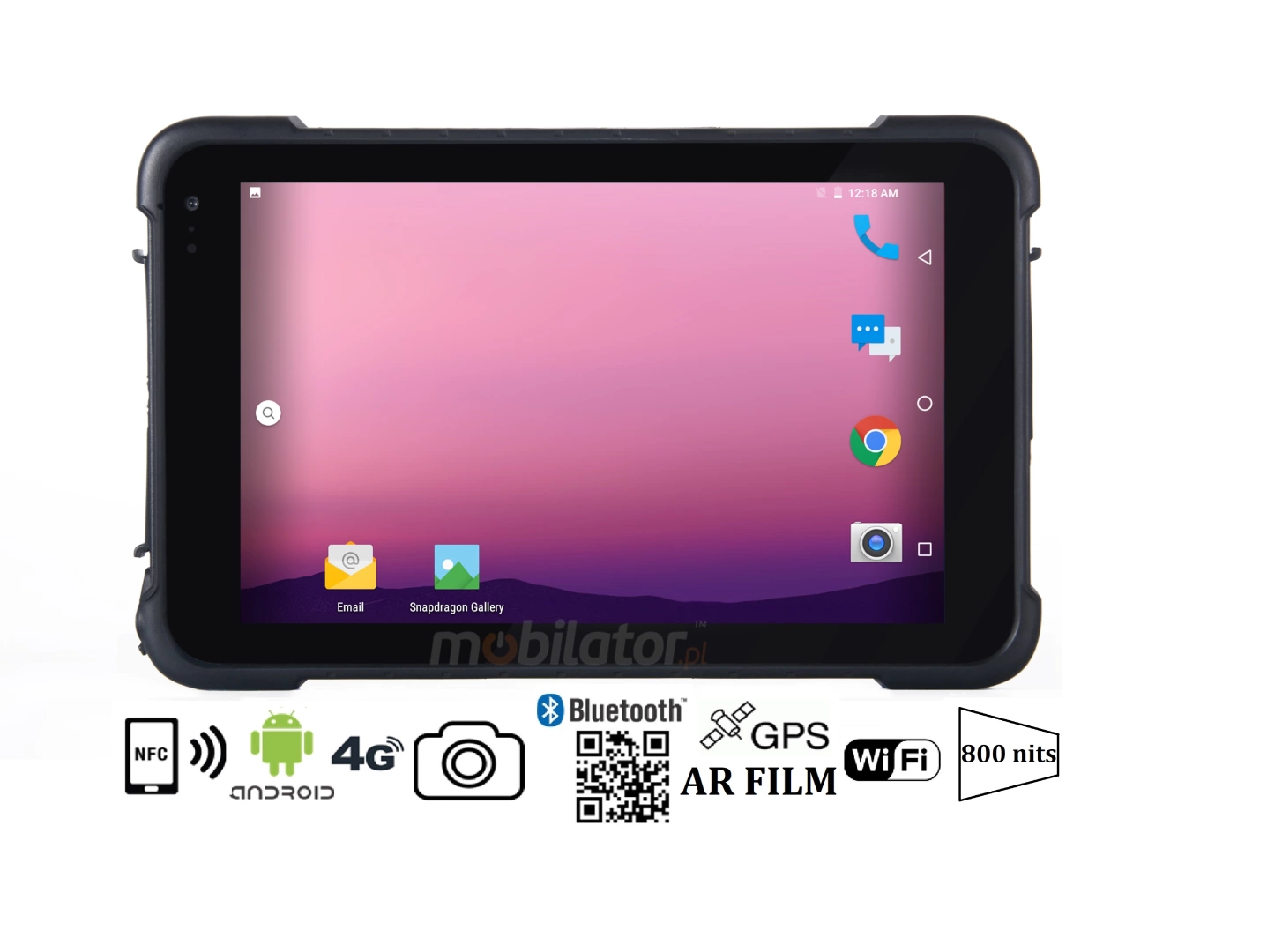 Dustproof industrial tablet Emdoor Q86 was equipped with high performance, energy-efficient MSM8953 (8x2.0GHz) processor. Inside, there are eight cores that allow for more efficient processing of multiple tasks simultaneously. Shared caching, which uses a multi-level hierarchy, is dynamically allocated to each processor core according to the load. This reduces the average access time to main memory. Enhanced graphics card technology lets you enjoy full HD video and movies. Low power consumption guarantees long battery life.