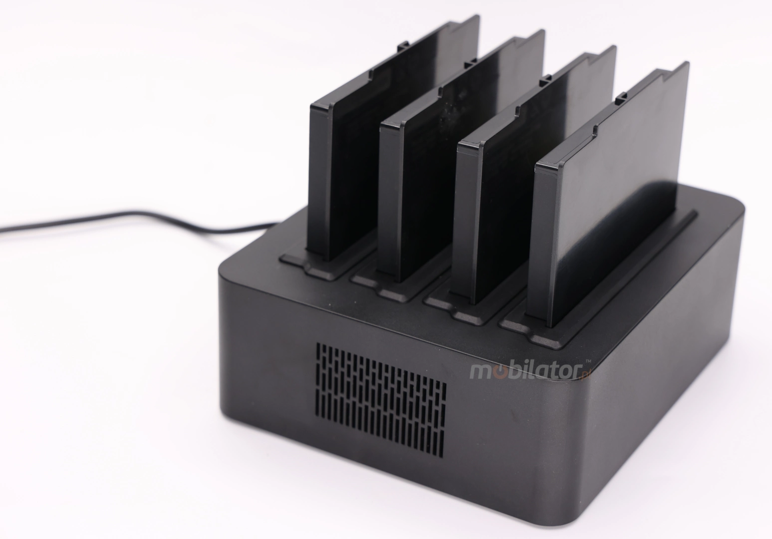 The Emdoor docking station enables convenient reliable charging up to 4 of the internal batteries of the device.