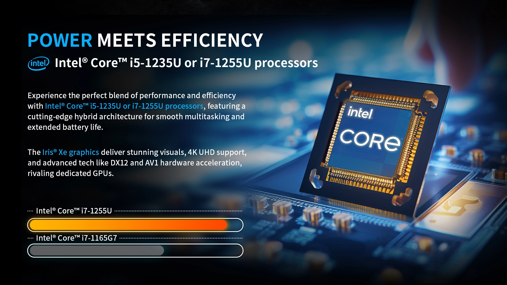 Intel Core i7-1255U Intel Core i5-1235U* (optional) |