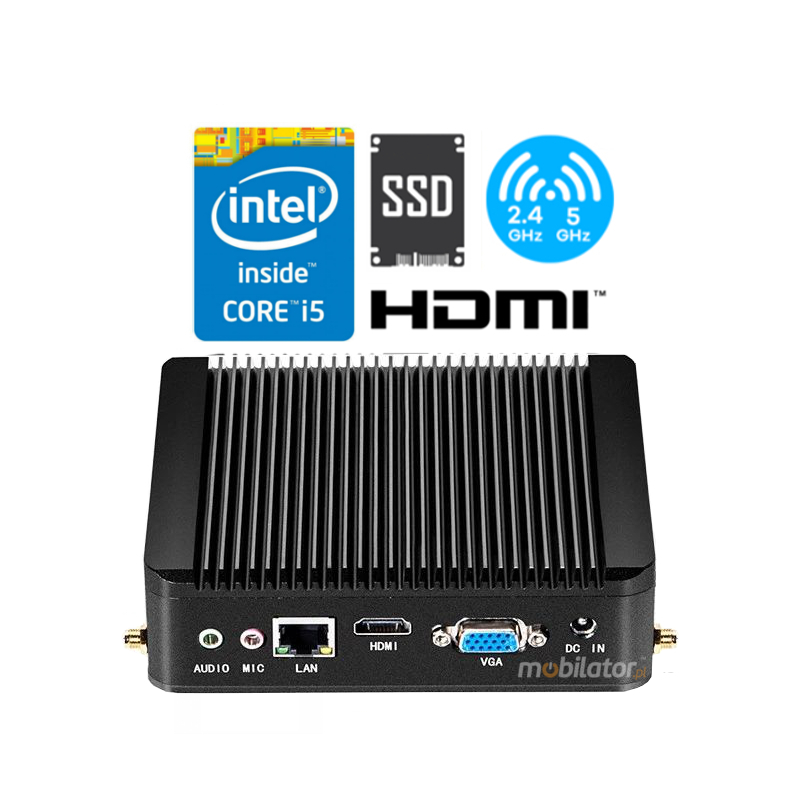 The industrial Mini PC uses a proven cooling system, based only on solid elements, mainly heat sinks. The system uses the phenomenon of metals passing thermal energy into the environment - there are no additional moving elements in the form of eg fans. This solution ensures noiseless operation, lower failure rate and greater protection against dust and other dirt while reducing the amount of energy consumed.