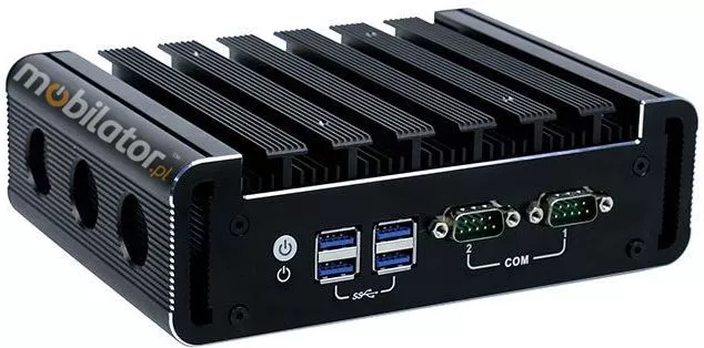 The industrial Mini PC uses a proven cooling system, based only on solid elements, mainly heat sinks. The system uses the phenomenon of metals passing thermal energy into the environment - there are no additional moving elements in the form of eg fans. This solution ensures noiseless operation, lower failure rate and greater protection against dust and other dirt while reducing the amount of energy consumed.
