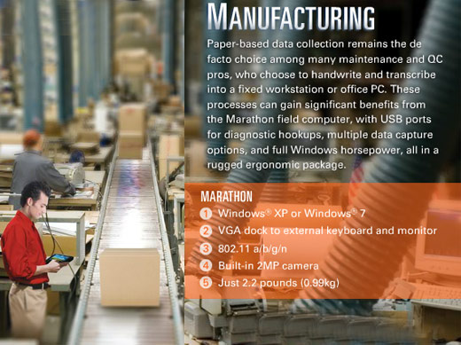 Marathon PCs are ideal gadget for mobile professionals. They enable you to take notes quickly and work in close spaces. Rugged Tablet PCs provide even more benefits for mobile professionals. Marathon is fully rugged and is certified for both military and industrial ruggedization standards.