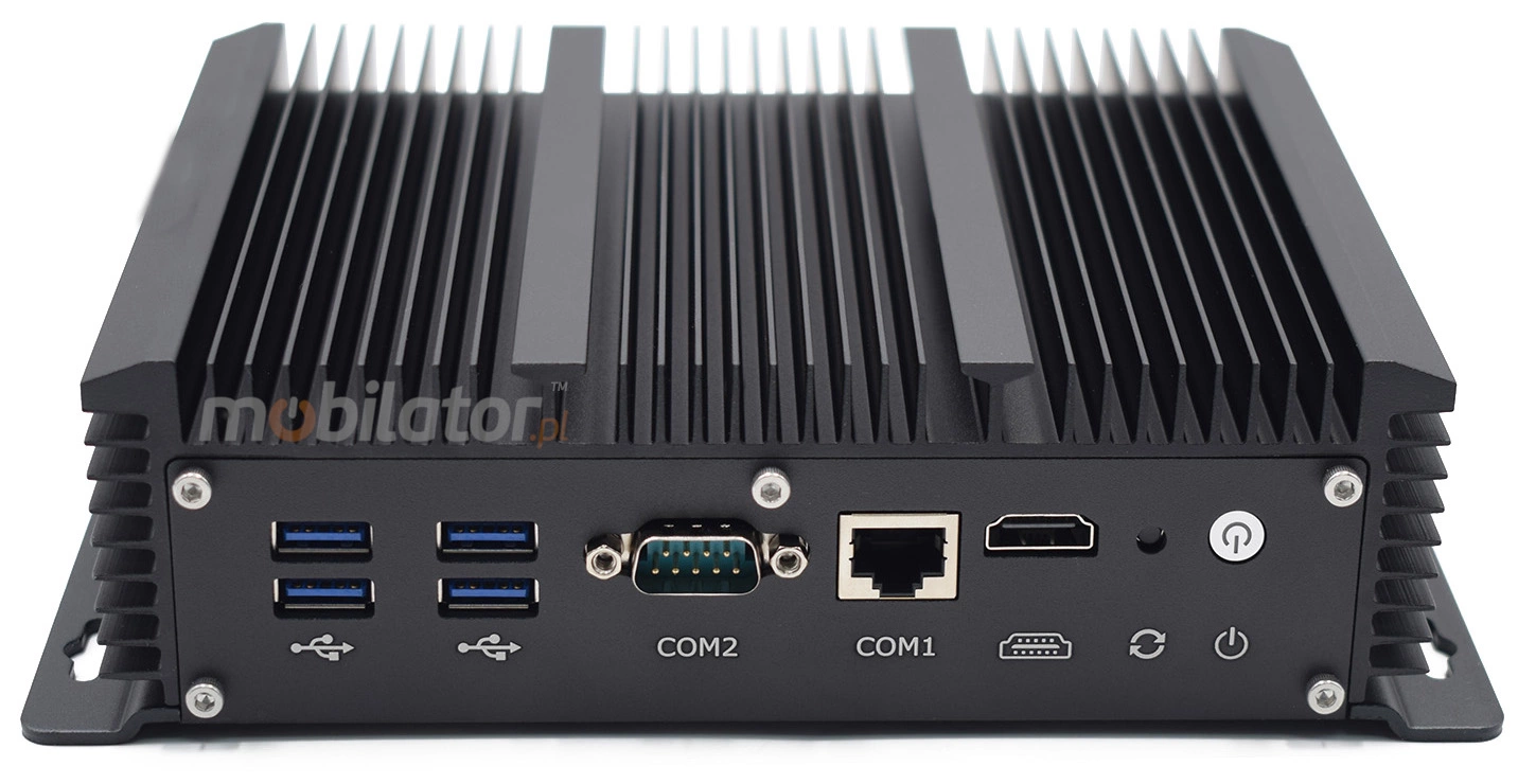 The industrial Mini PC uses a proven cooling system, based only on solid elements, mainly heat sinks. The system uses the phenomenon of metals passing thermal energy into the environment - there are no additional moving elements in the form of eg fans. This solution ensures noiseless operation, lower failure rate and greater protection against dust and other dirt while reducing the amount of energy consumed.