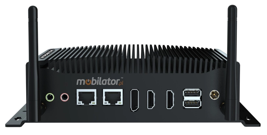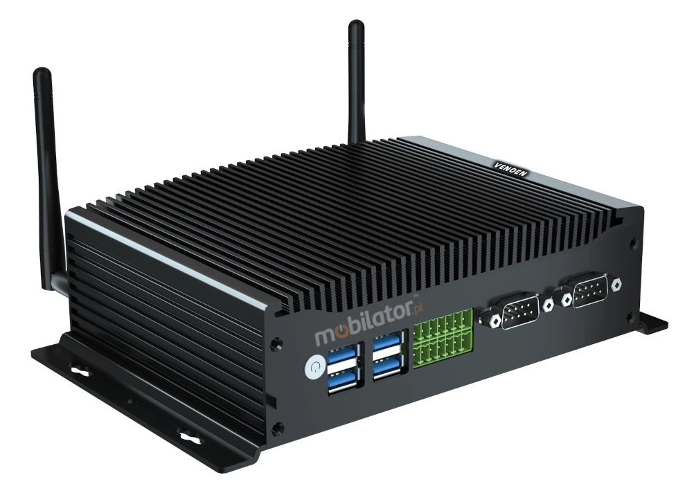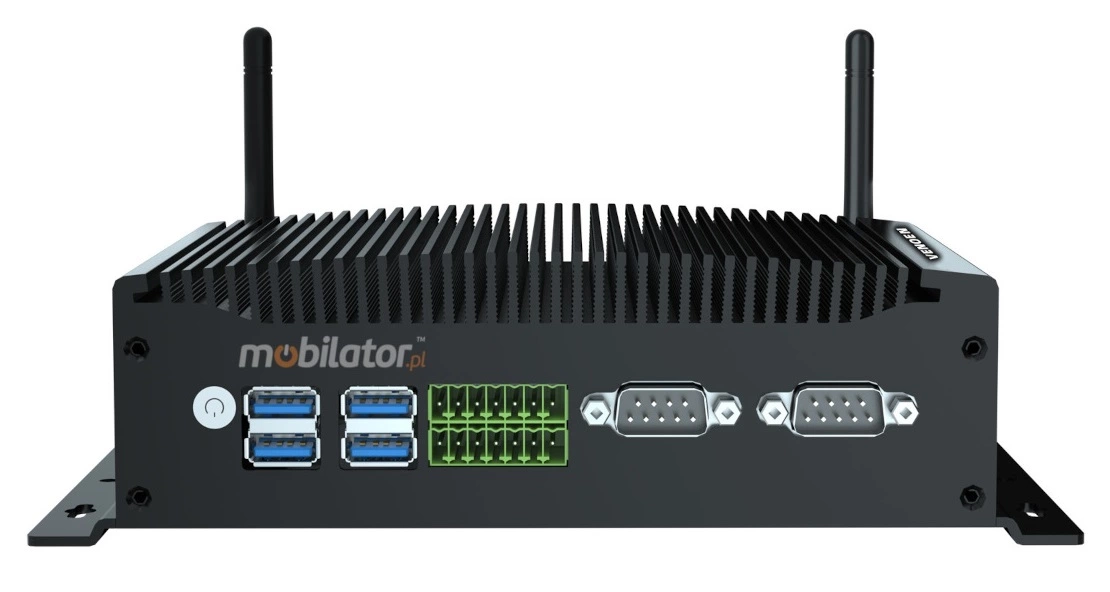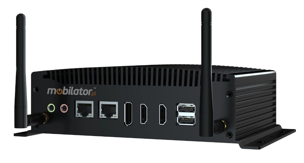 The industrial Mini PC uses a proven cooling system, based only on solid elements, mainly heat sinks. The system uses the phenomenon of metals passing thermal energy into the environment - there are no additional moving elements in the form of eg fans. This solution ensures noiseless operation, lower failure rate and greater protection against dust and other dirt while reducing the amount of energy consumed.