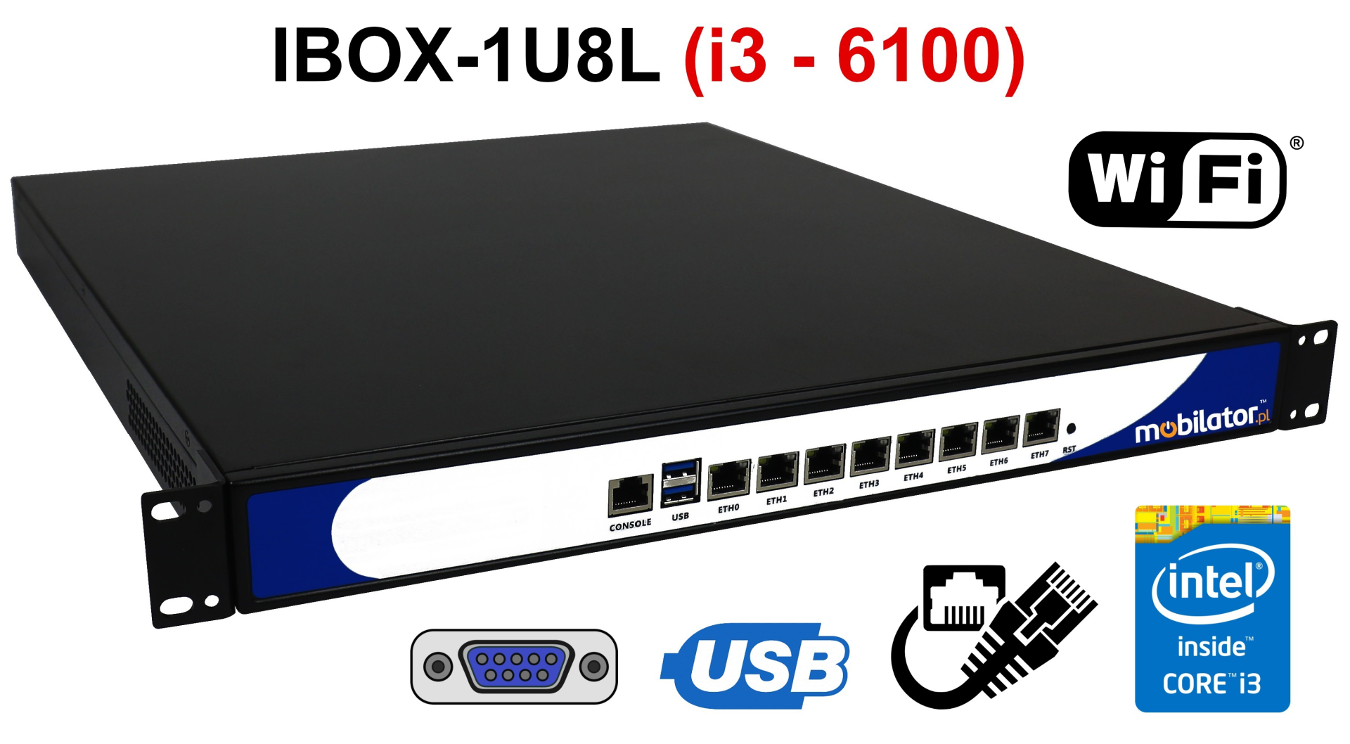 The MiniPC IBOX-1U8L has built-in 8x Intel network adapter that can work in a fast Gigabit Ethernet network.