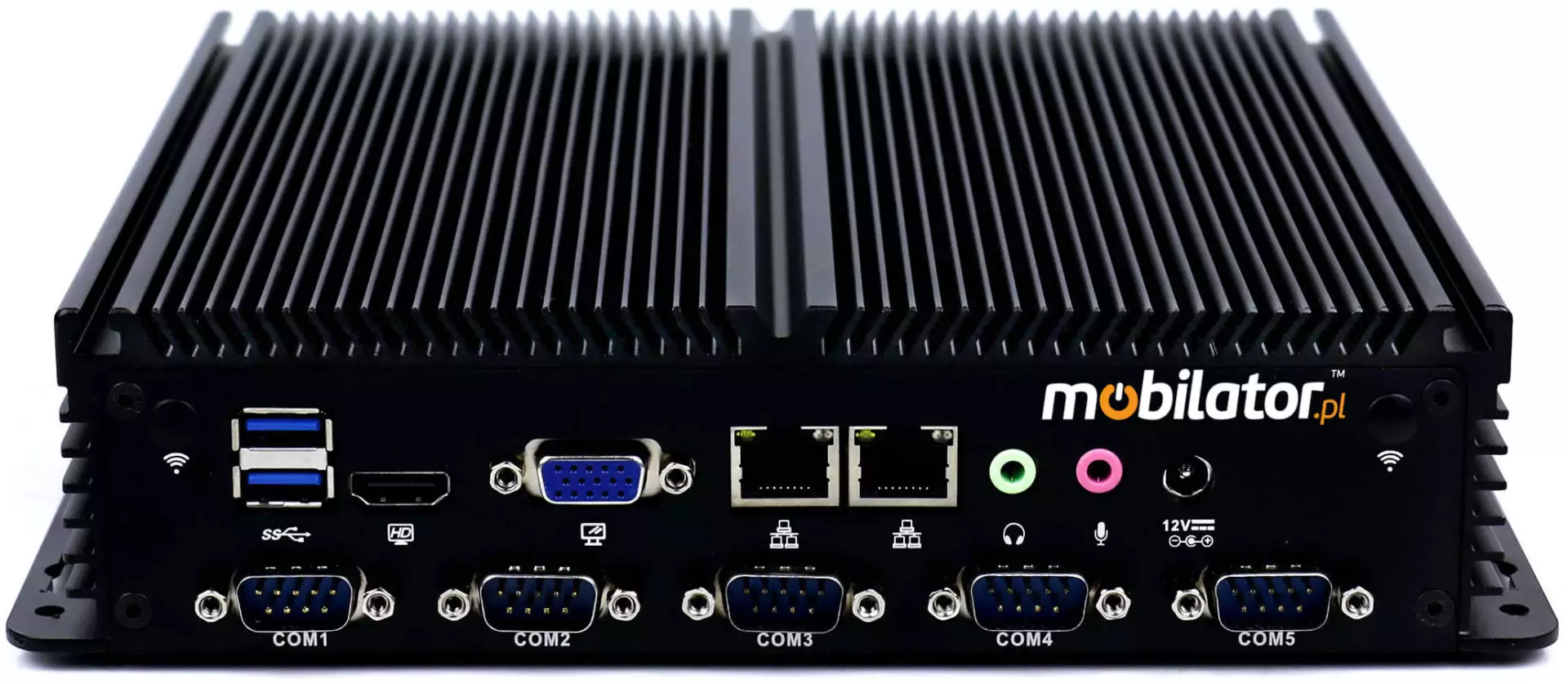The industrial Mini PC uses a proven cooling system, based only on solid elements, mainly heat sinks. The system uses the phenomenon of metals passing thermal energy into the environment - there are no additional moving elements in the form of eg fans. This solution ensures noiseless operation, lower failure rate and greater protection against dust and other dirt while reducing the amount of energy consumed.