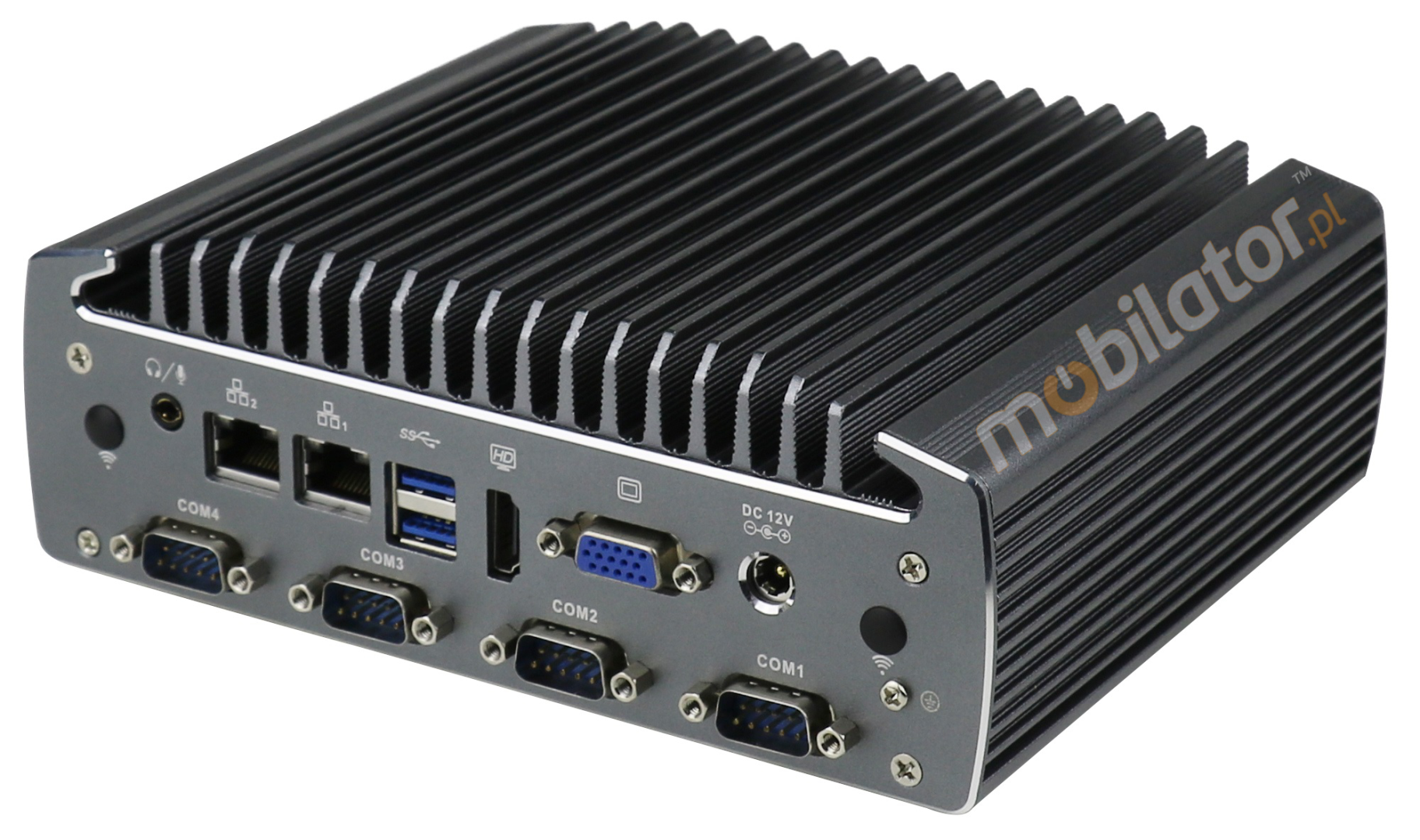 The industrial Mini PC uses a proven cooling system, based only on solid elements, mainly heat sinks. The system uses the phenomenon of metals passing thermal energy into the environment - there are no additional moving elements in the form of eg fans. This solution ensures noiseless operation, lower failure rate and greater protection against dust and other dirt while reducing the amount of energy consumed.
