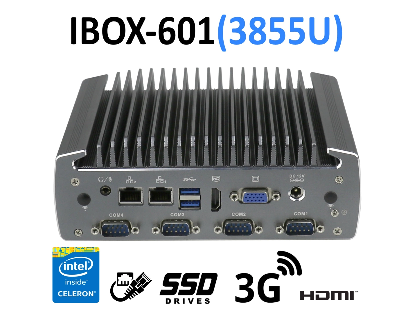 Small dimensions industrial computers excel in environments where dust, dirt and moisture predominate. They are ideal for applications requiring quiet operation. Small and reliable MiniPC use heat-pipe technology and aluminum fins for passive cooling. The robust mini Industrial Computer IBOX-601 is a device designed for all industrial and non-continuous applications requiring continuous operation - 24 hours, 7 days a week.
