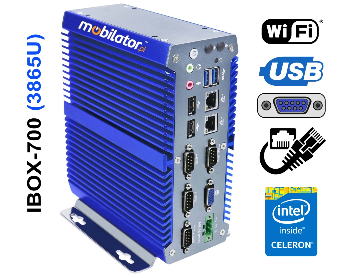 The industrial mini-computer IBOX-700 uses an efficient and energy-saving Intel Celeron 3865U processor. Inside it there are two cooperating cores enabling more efficient processing of many tasks at the same time. The shared cache memory in which the multilevel hierarchy is used is dynamically allocated to each processor core depending on the load. This reduces the average access time to the main memory. It offers improved manageability by limiting downtime and maintaining productivity by isolating computing activities into separate partitions.