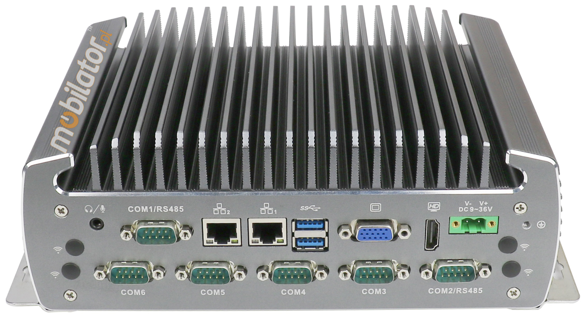 The industrial Mini PC uses a proven cooling system, based only on solid elements, mainly heat sinks. The system uses the phenomenon of metals passing thermal energy into the environment - there are no additional moving elements in the form of eg fans. This solution ensures noiseless operation, lower failure rate and greater protection against dust and other dirt while reducing the amount of energy consumed.