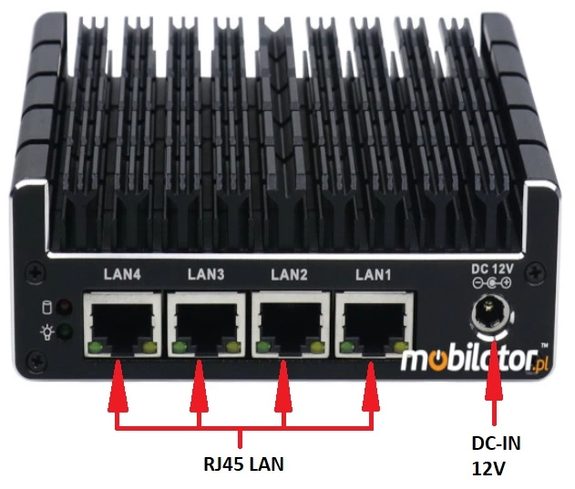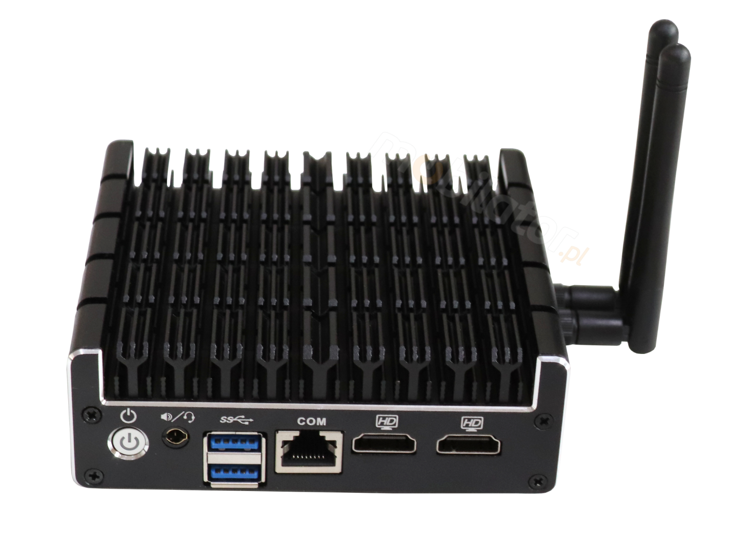 The industrial Mini PC uses a proven cooling system, based only on solid elements, mainly heat sinks. The system uses the phenomenon of metals passing thermal energy into the environment - there are no additional moving elements in the form of eg fans. This solution ensures noiseless operation, lower failure rate and greater protection against dust and other dirt while reducing the amount of energy consumed.
