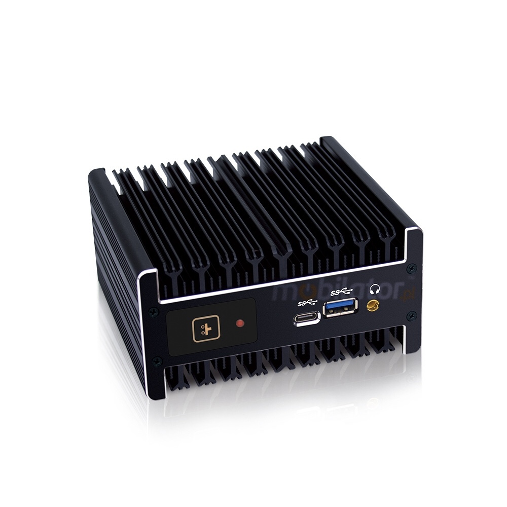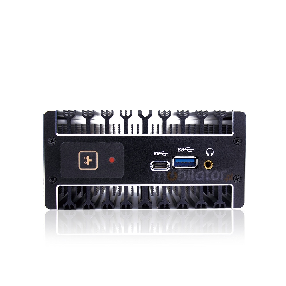 The industrial Mini PC uses a proven cooling system, based only on solid elements, mainly heat sinks. The system uses the phenomenon of metals passing thermal energy into the environment - there are no additional moving elements in the form of eg fans. This solution ensures noiseless operation, lower failure rate and greater protection against dust and other dirt while reducing the amount of energy consumed.