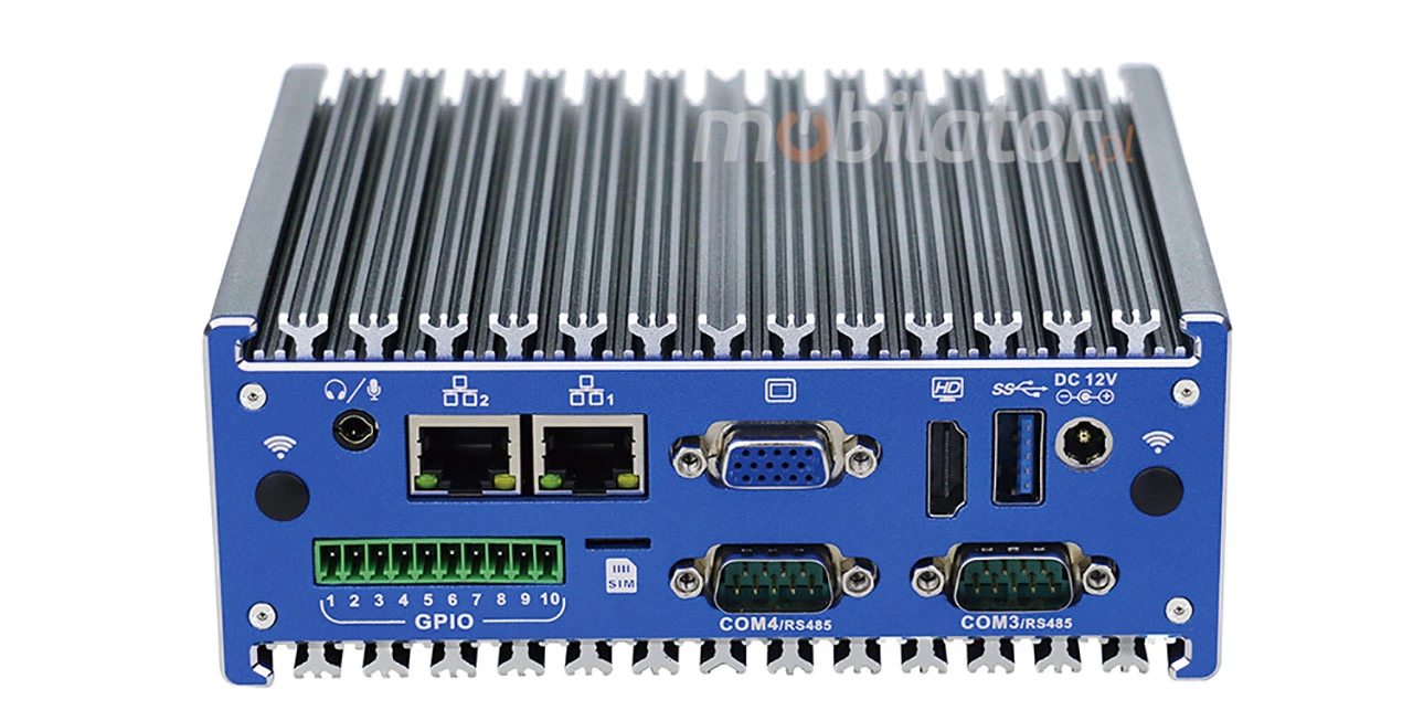 The industrial Mini PC uses a proven cooling system, based only on solid elements, mainly heat sinks. The system uses the phenomenon of metals passing thermal energy into the environment - there are no additional moving elements in the form of eg fans. This solution ensures noiseless operation, lower failure rate and greater protection against dust and other dirt while reducing the amount of energy consumed.