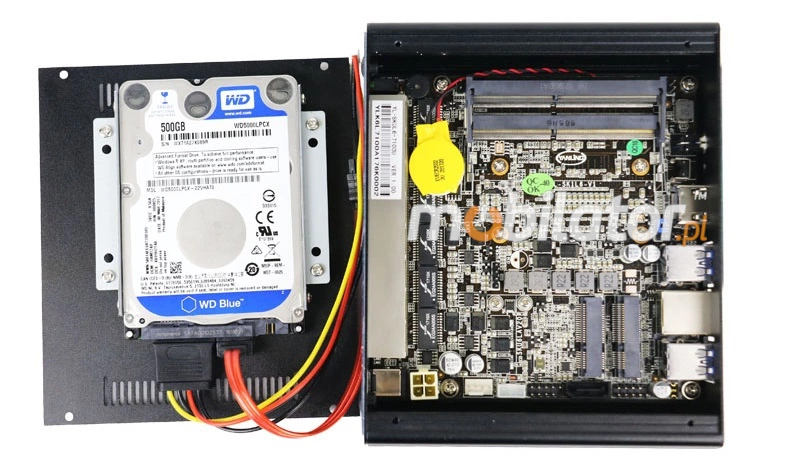 The industrial Mini PC uses a proven cooling system, based only on solid elements, mainly heat sinks. The system uses the phenomenon of metals passing thermal energy into the environment - there are no additional moving elements in the form of eg fans. This solution ensures noiseless operation, lower failure rate and greater protection against dust and other dirt while reducing the amount of energy consumed.