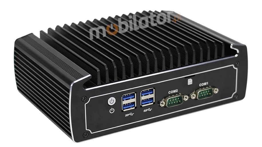 The industrial Mini PC uses a proven cooling system, based only on solid elements, mainly heat sinks. The system uses the phenomenon of metals passing thermal energy into the environment - there are no additional moving elements in the form of eg fans. This solution ensures noiseless operation, lower failure rate and greater protection against dust and other dirt while reducing the amount of energy consumed.