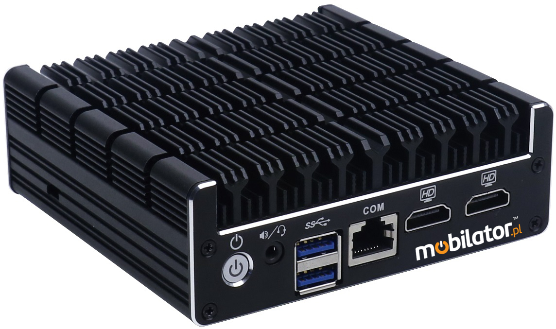 The industrial Mini PC uses a proven cooling system, based only on solid elements, mainly heat sinks. The system uses the phenomenon of metals passing thermal energy into the environment - there are no additional moving elements in the form of eg fans. This solution ensures noiseless operation, lower failure rate and greater protection against dust and other dirt while reducing the amount of energy consumed.