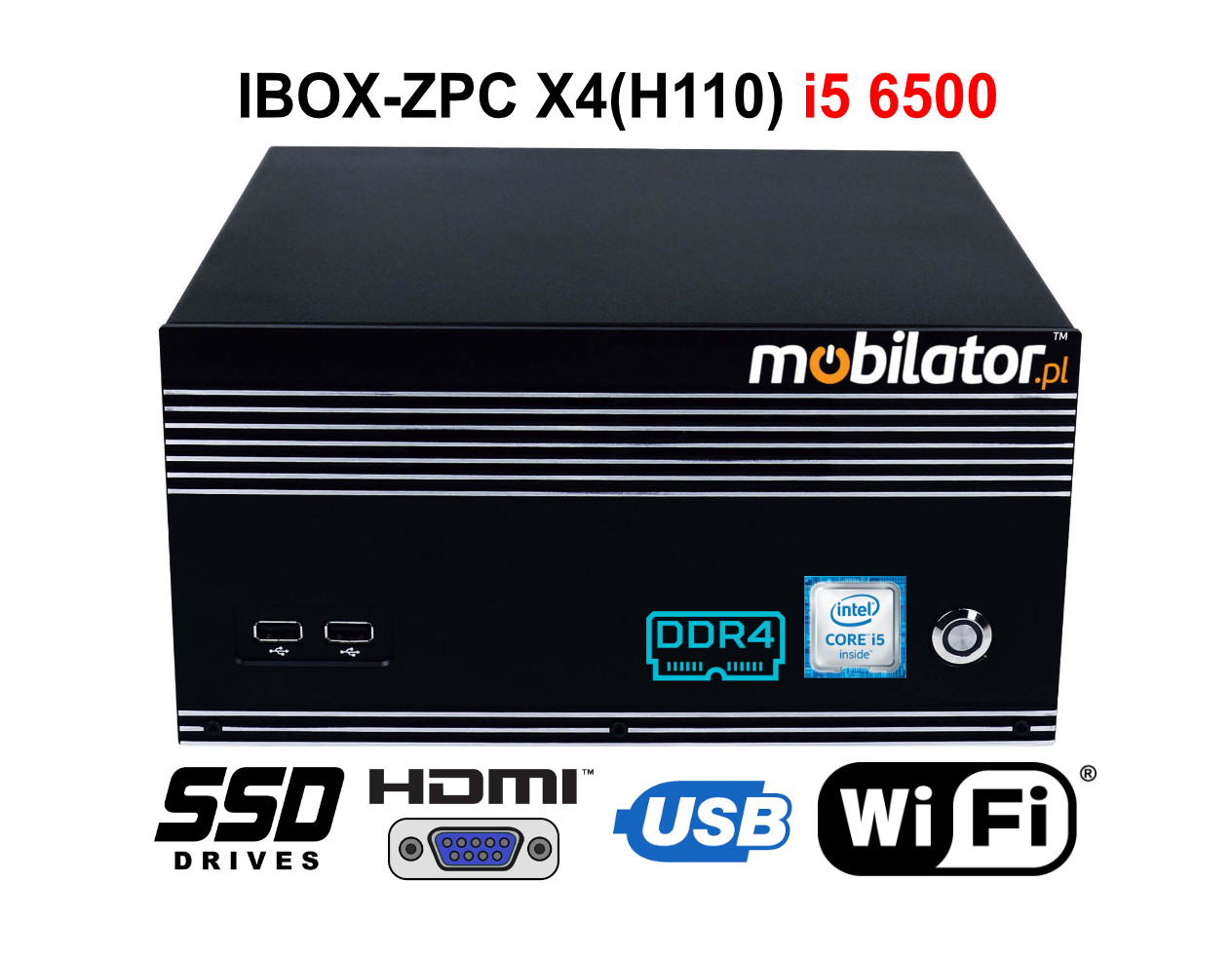 The industrial mini-computer IBOX-ZPC X4 uses an efficient and energy-saving Intel i5 6500 processor. Inside it there are four cooperating cores enabling more efficient processing of many tasks at the same time. The shared cache memory in which the multilevel hierarchy is used is dynamically allocated to each processor core depending on the load. This reduces the average access time to the main memory. It offers improved manageability by limiting downtime and maintaining productivity by isolating computing activities into separate partitions.