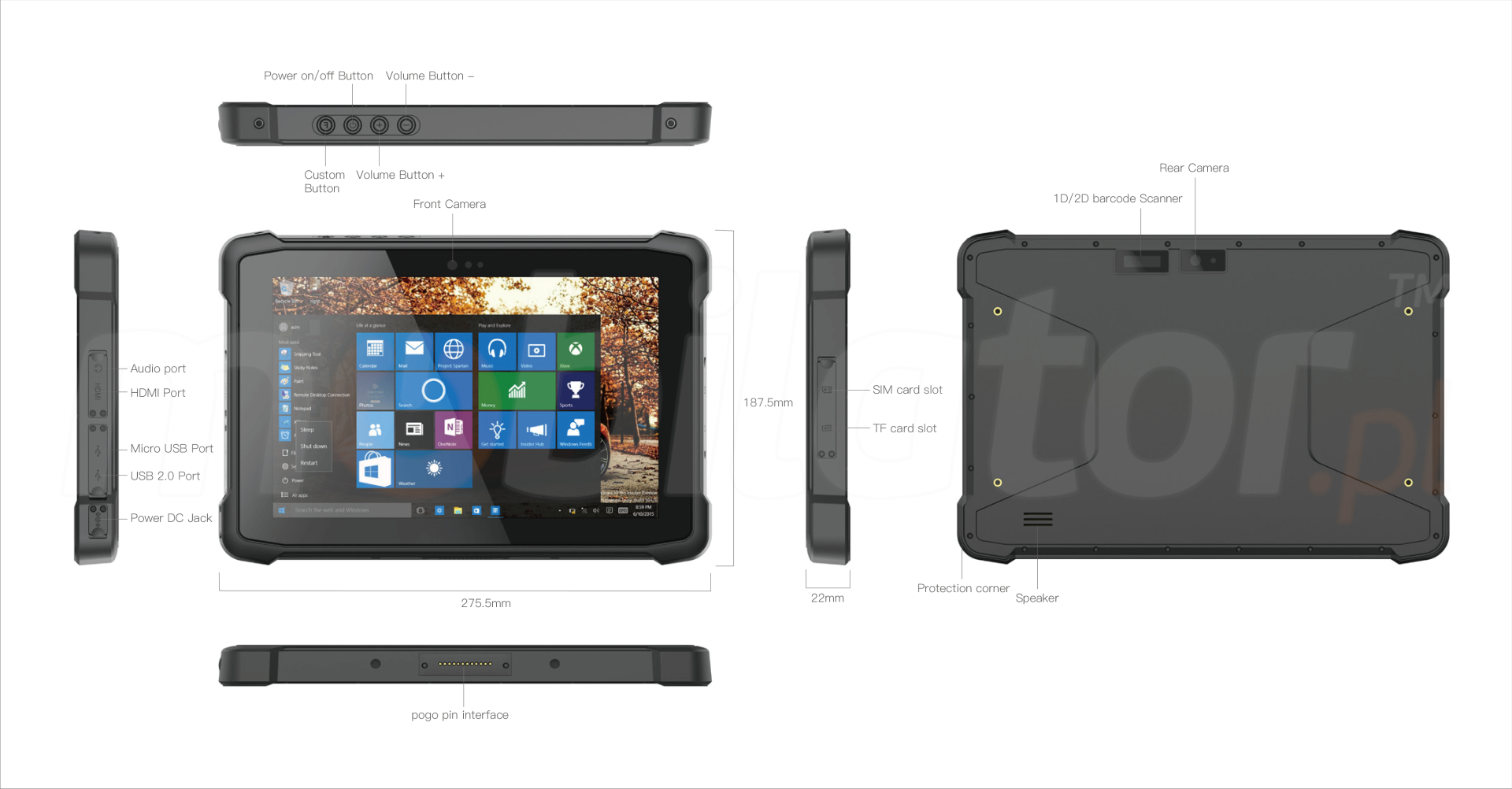Emdoor I11H is a modern, waterproof industrial tablet designed for extreme applications. It has a specially designed, reinforced construction that meets the requirements of IP65, which confirms the protection of the device against dust and water.