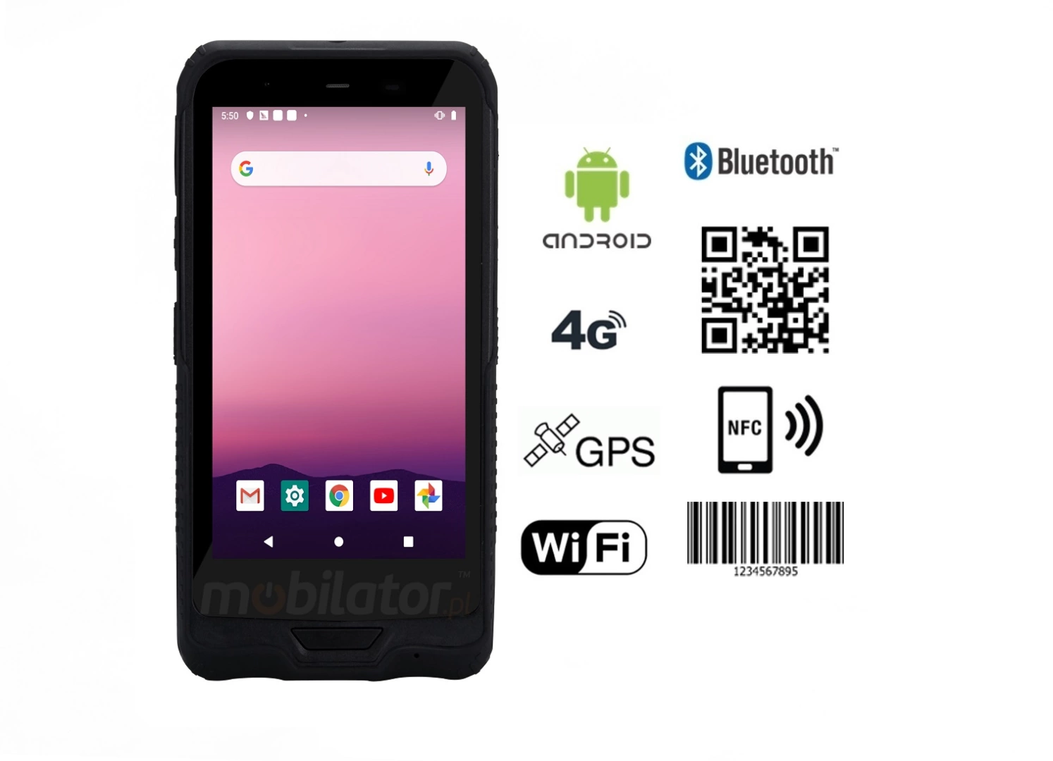 Industrial Data Terminal Mobipad Qxtron 6600 is designed for resistance and convenience. The sleek and rugged 20.7mm thick design and stylish case will make the collector very well suited for industrial use and more. The unique size has been carefully thought out to make the device more comfortable and ergonomic. The non-slip casing makes it safe and secure to hold it in your hand.
