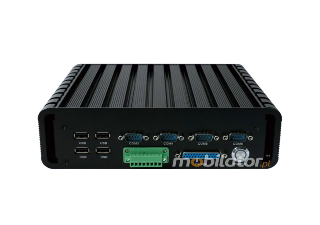 Integrated cards - Intel L210/L217 Lan and WiFi module allow connection to the network. The computer is equipped with: two LAN ports, four USB 3.0 ports, one VGA output, four USB 2.0 ports, one HDMI output, six COM(RS232) ports (two can support RS422/485), one LPT port, one way audio, one microphone input.