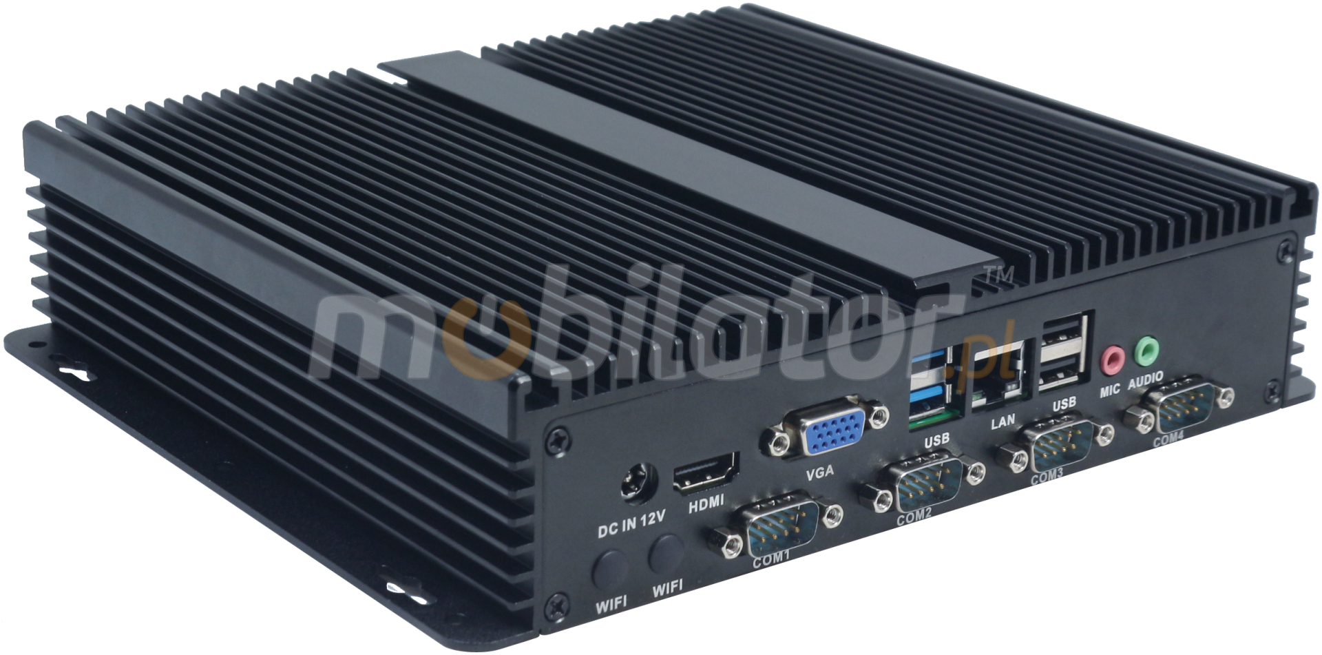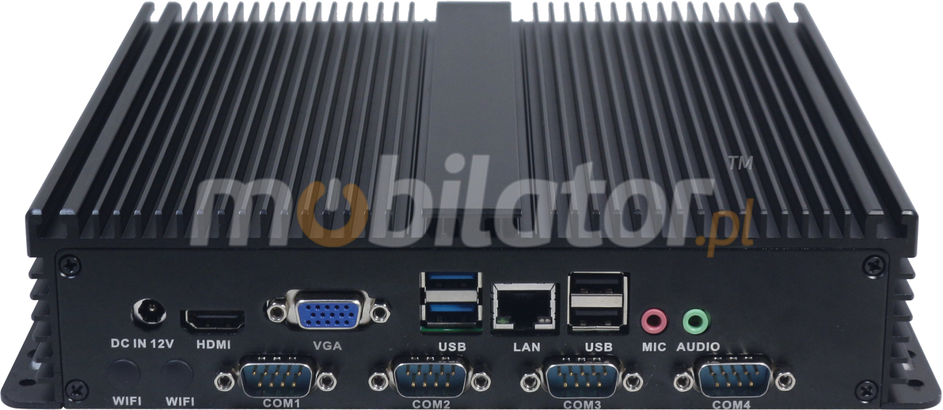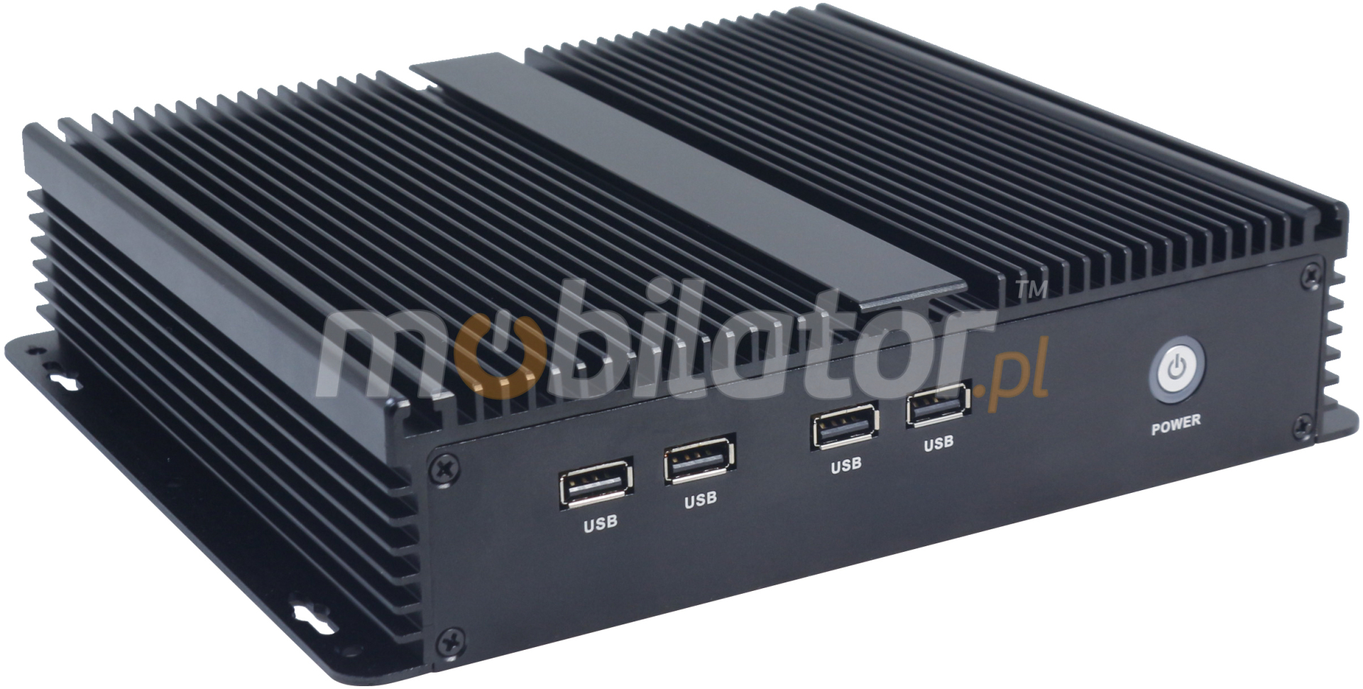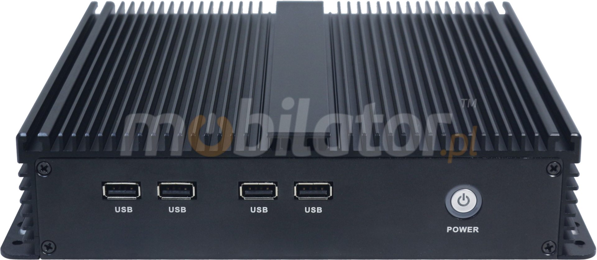 The industrial fanless MiniPC IBOX-209 uses a special method of cooling. This cooling takes place mainly by means of housing having a very large surface (longitudinal lamells, ribs) - for heat dissipation. Fan used inside the computer is designed to rapidly drain hot air from the CPU, allowing MiniPC to reach more efficiently and faster cooling.