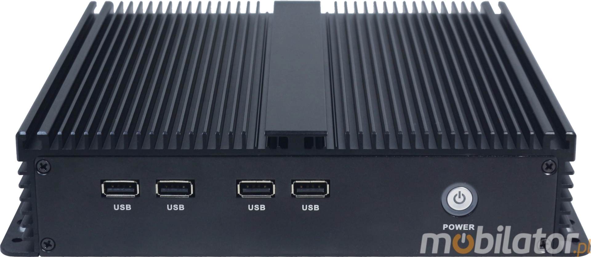The industrial fanless MiniPC IBOX-J1900C uses a special method of cooling. This cooling takes place mainly by means of housing having a very large surface (longitudinal lamells, ribs) - for heat dissipation. Fan used inside the computer is designed to rapidly drain hot air from the CPU, allowing MiniPC to reach more efficiently and faster cooling.