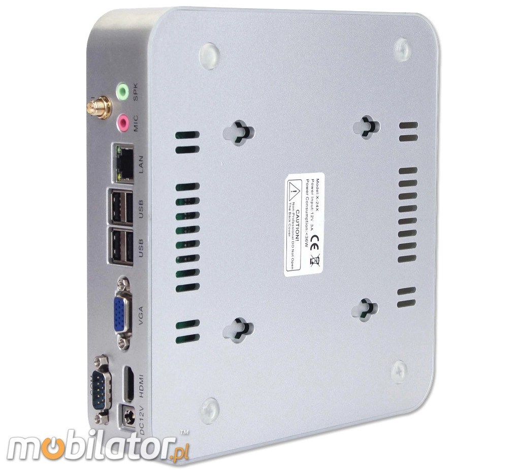 Integrated card NIC RTL8103EL 10/100 Onboard Gigabit LAN allows you to connect the device to the network. The computer is equipped with: one LAN connector, one HDMI output, four USB 2.0 ports,, one VGA, one Mic input one audio input, optionally equips one in COM port (RS-232).