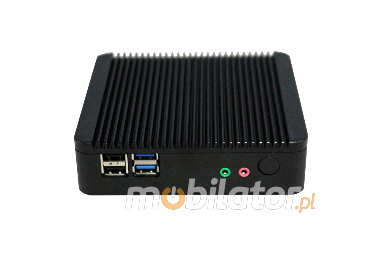 The industrial fanless MiniPC IBOX-Nano-J1900 uses a special method of cooling. This cooling takes place mainly by means of housing having a very large surface (longitudinal lamells, ribs) - for heat dissipation. Fan used inside the computer is designed to rapidly drain hot air from the CPU, allowing MiniPC to reach more efficiently and faster cooling.