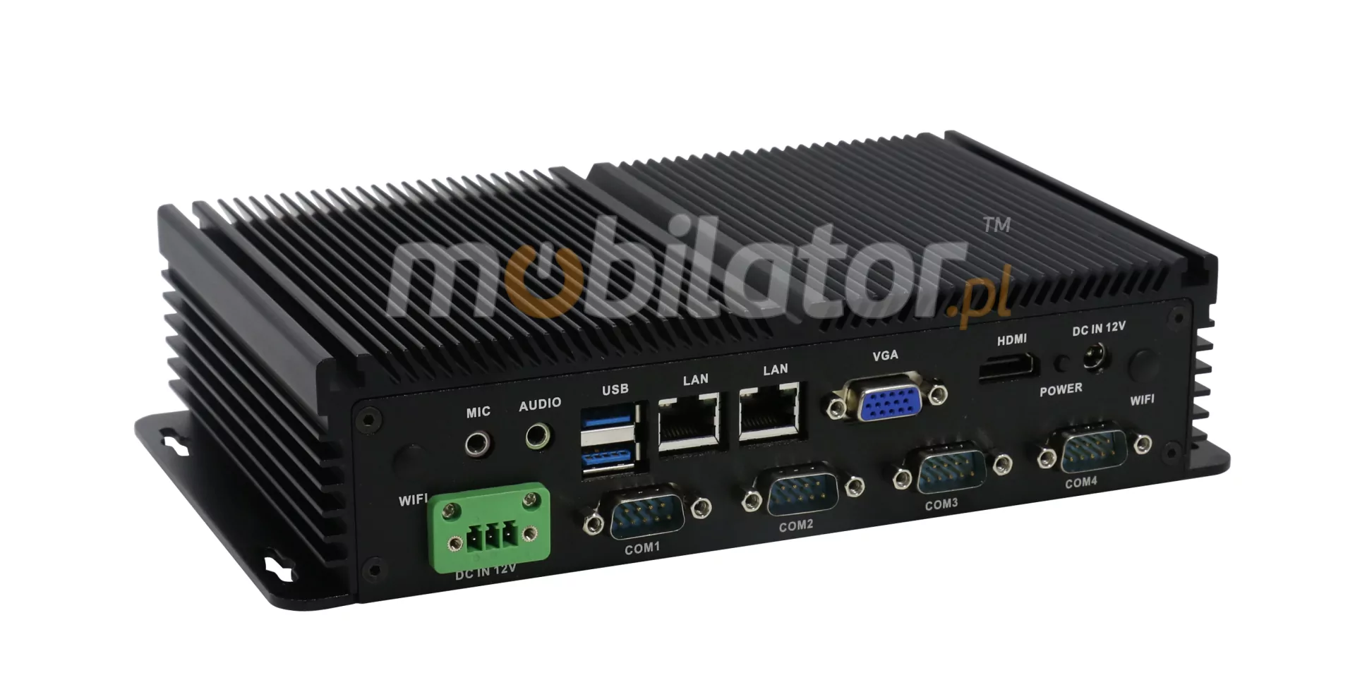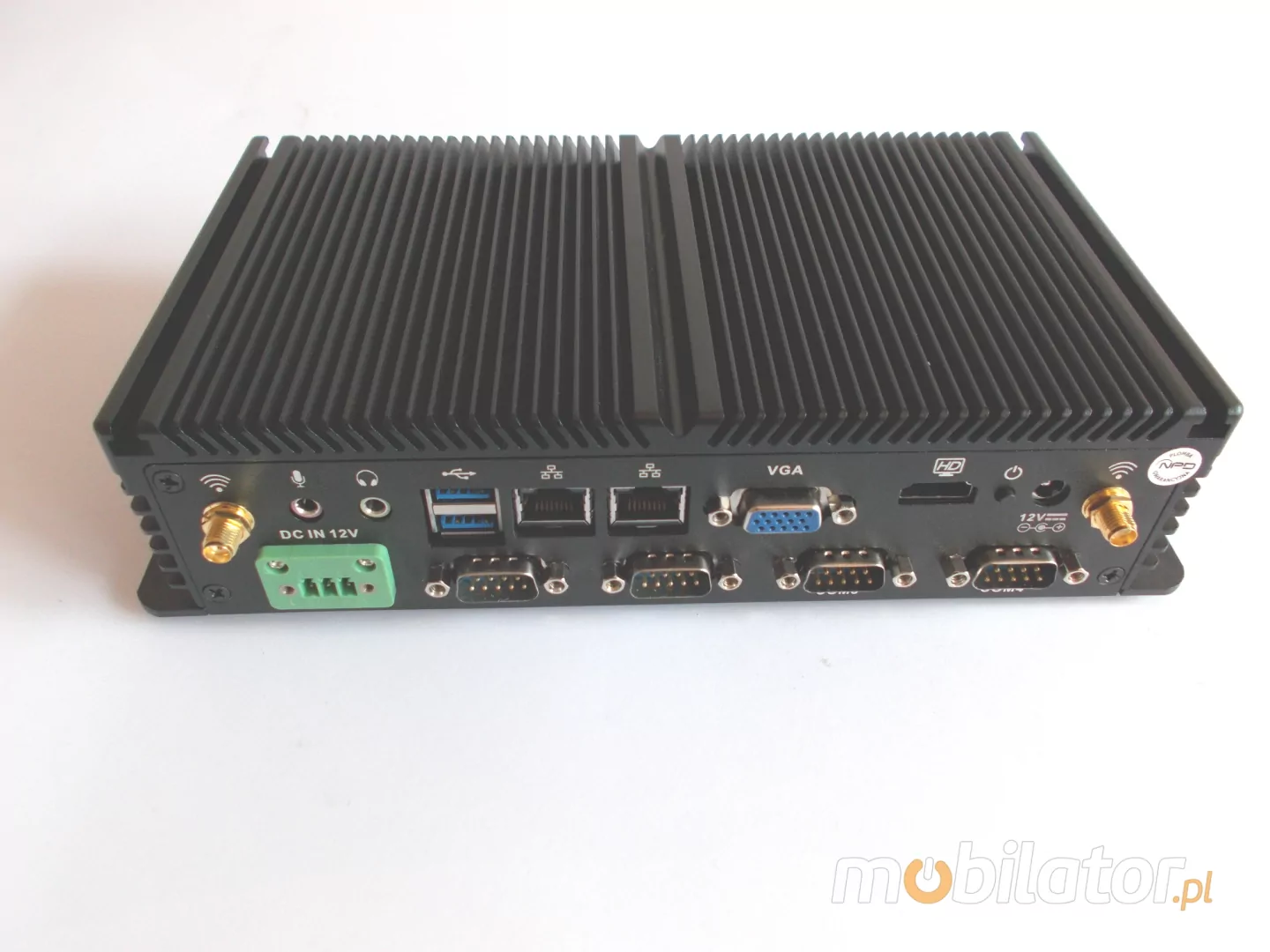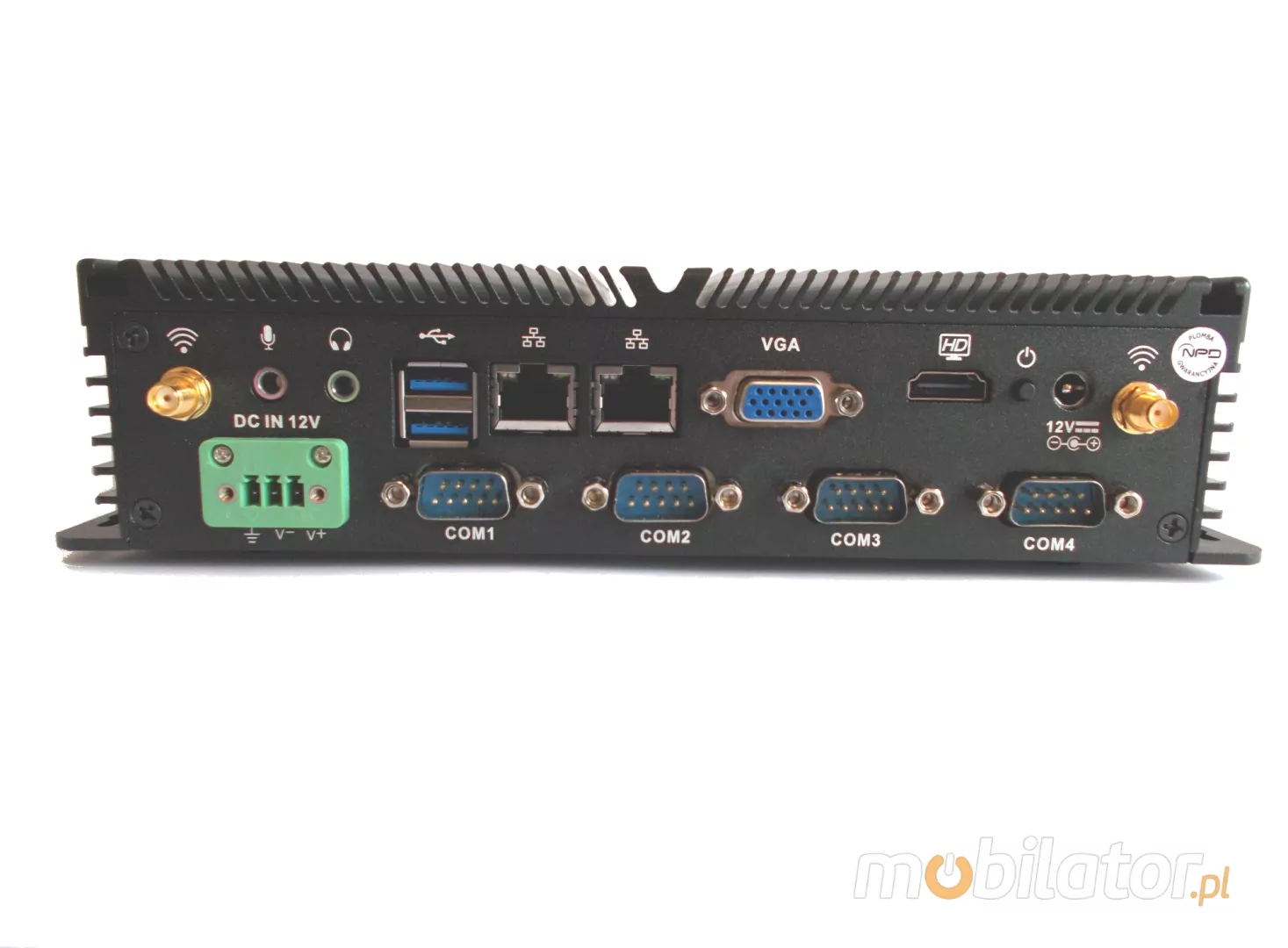 Integrated cards - Intel WGI211AT 1000M Lan allows connection to the network. The computer is equipped with: two LAN ports, one VGA port, six COM ports, one HDMI port, one GPIO interface one USB 3.0 ports, five USB 2.0 ports, SIM Card slot and a built-in connector on the motherboard: two SATA ports, one MiniSATA port, and two Mini-PCIE connectors.