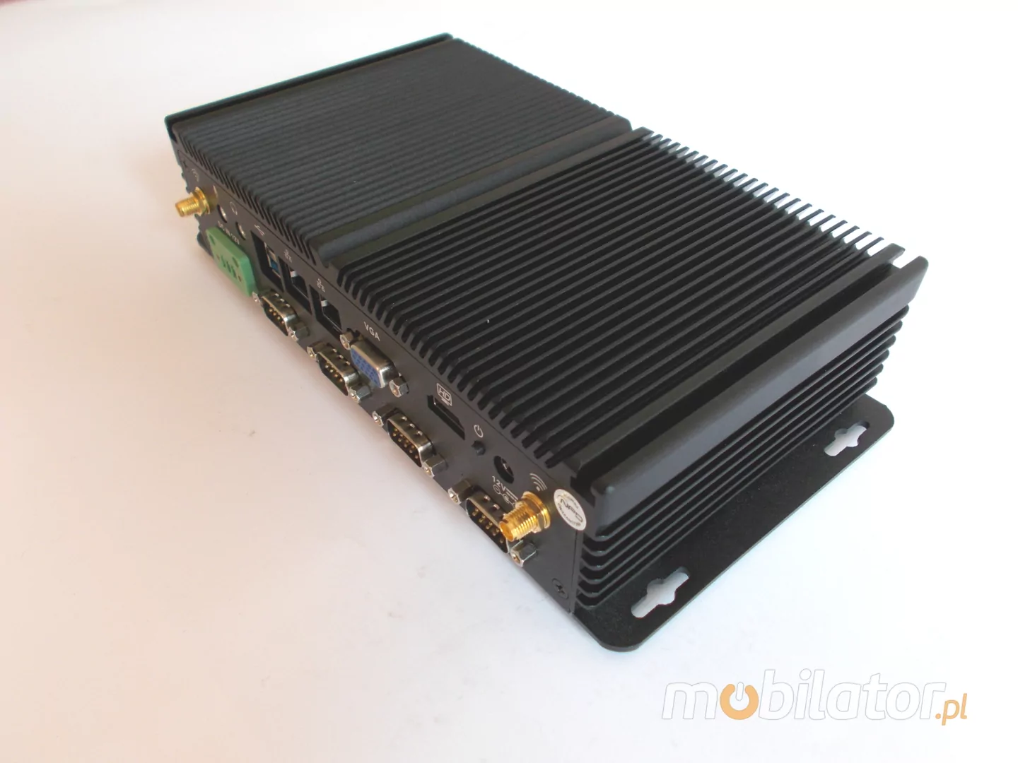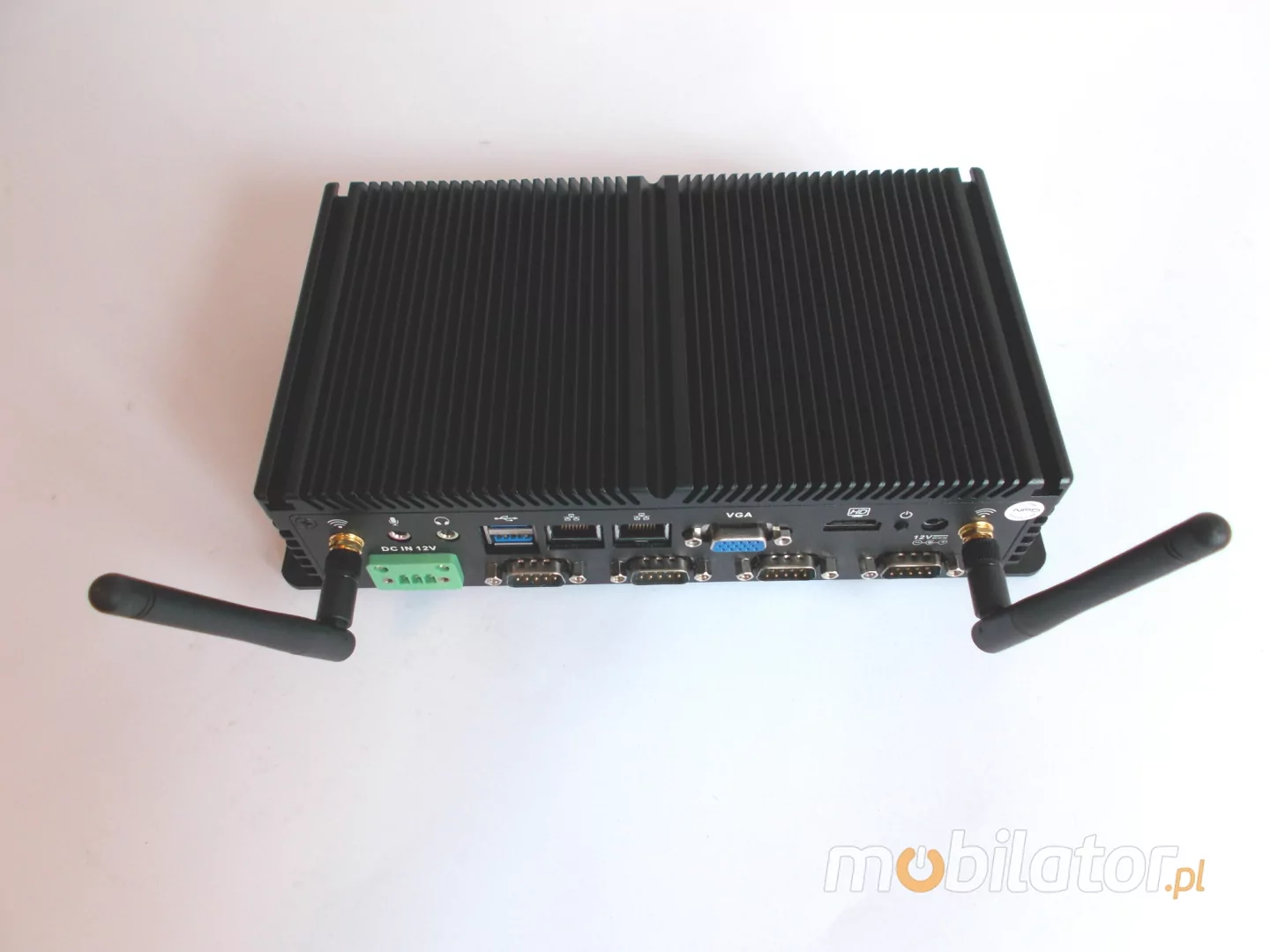 The industrial fanless MiniPC Nuc IBOX-101 uses a special method of cooling. This cooling takes place mainly by means of housing having a very large surface (longitudinal lamells, ribs) - for heat dissipation. Fan used inside the computer is designed to rapidly drain hot air from the CPU, allowing MiniPC to reach more efficiently and faster cooling.