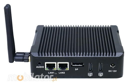 Integrated card - Intel RTL811E 1000M Lan and WiFi + Bluetooth allows connection to the network. The computer is equipped with: two LAN ports, one DP port, two HDMI ports, two USB 3.0 ports, four USB 2.0 ports, one COM(RS232) port and a built-in connector on the motherboard: SATA port, MiniSATA port, one RJ-45 COM and one Mini-PCIE connector.