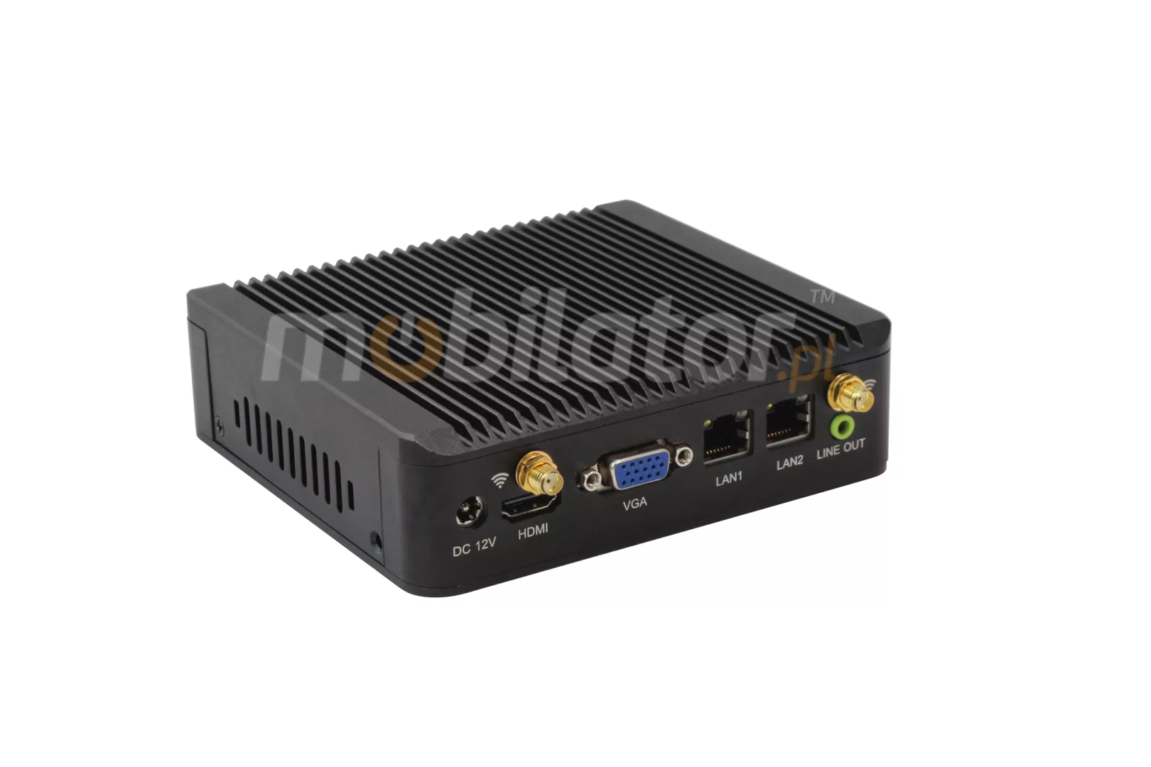 The industrial fanless MiniPC Nuc IBOX-501 N6 uses a special method of cooling. This cooling takes place mainly by means of housing having a very large surface (longitudinal lamells, ribs) - for heat dissipation. Fan used inside the computer is designed to rapidly drain hot air from the CPU, allowing MiniPC to reach more efficiently and faster cooling.