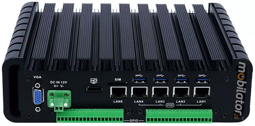 The industrial Mini PC uses a proven cooling system, based only on solid elements, mainly heat sinks. The system uses the phenomenon of metals passing thermal energy into the environment - there are no additional moving elements in the form of eg fans. This solution ensures noiseless operation, lower failure rate and greater protection against dust and other dirt while reducing the amount of energy consumed.