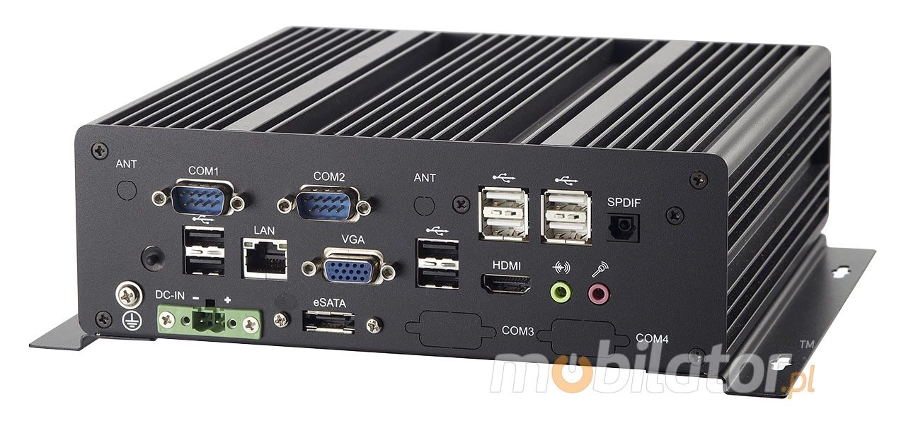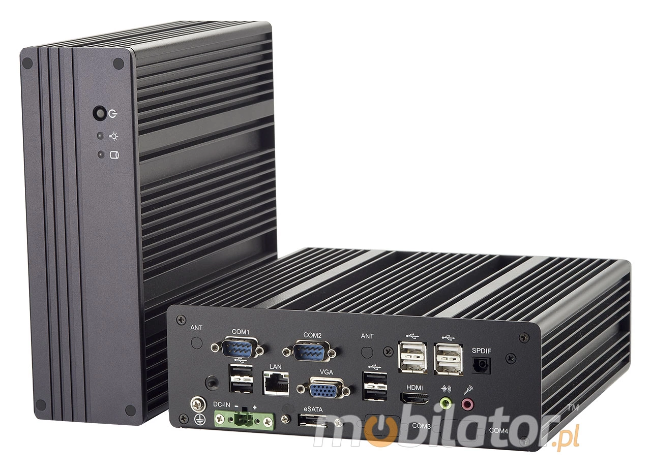 Integrated card - Intel LAN 82574L allow connection to the network. The computer is equipped with: one LAN port, two COM ports (RS232), one HDMI port, one VGA outpu, eight USB 2.0 ports, one port eSATA and one SPDIF.