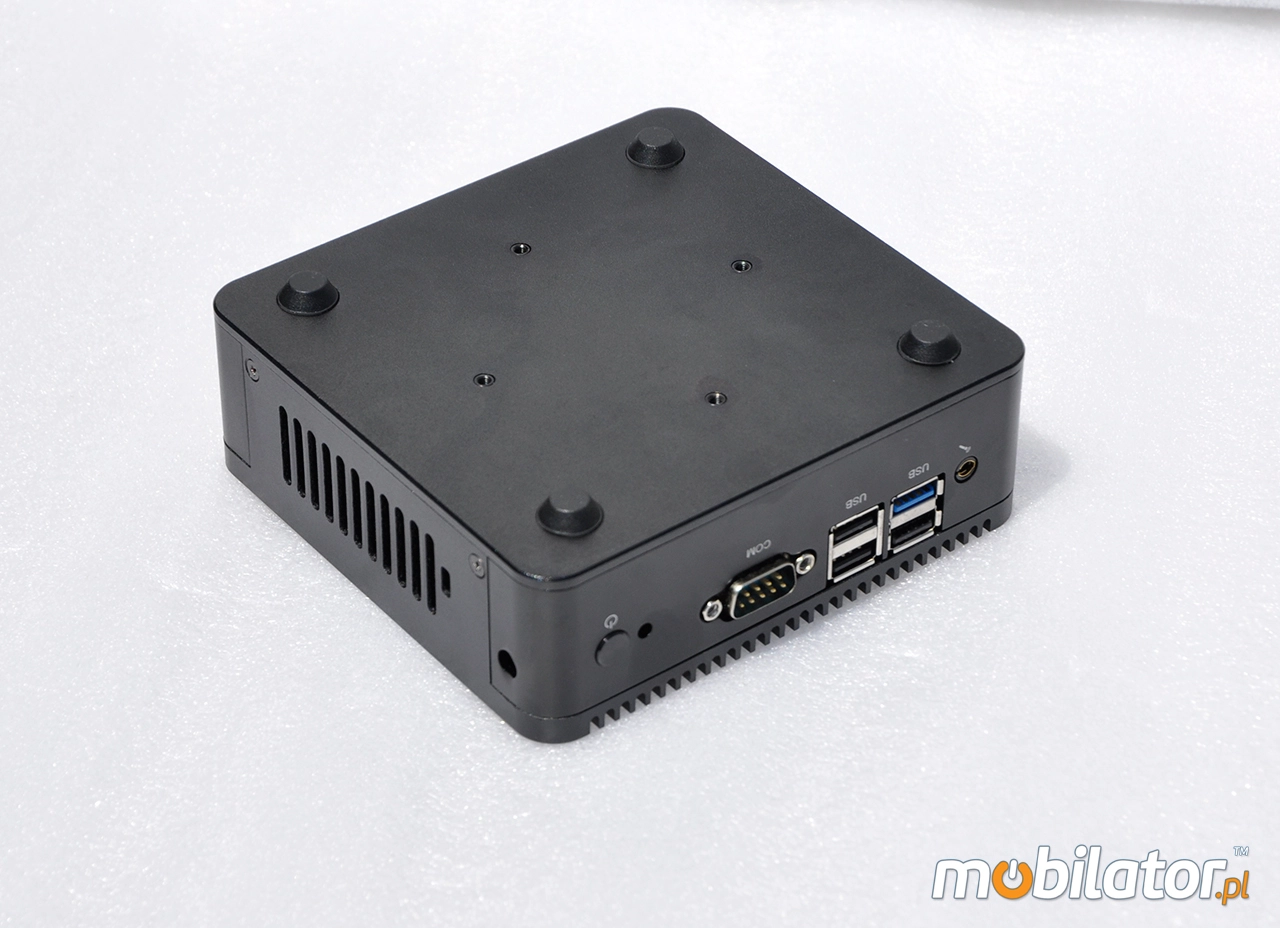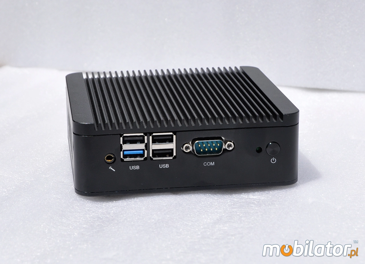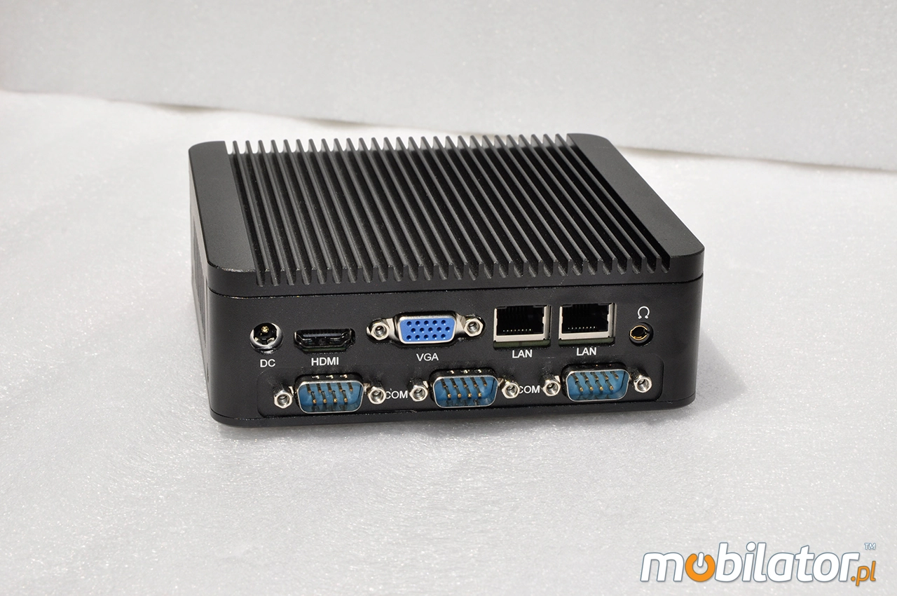 Integrated card - Intel RTL8111E LAN (optional WiFi module) allow connection to the network. The computer is equipped with: two LAN port, four COM (RS232) port, one VGA output, three USB 2.0 ports, one USB 3.0 port, one HDMI output one way audio, one microphone input.