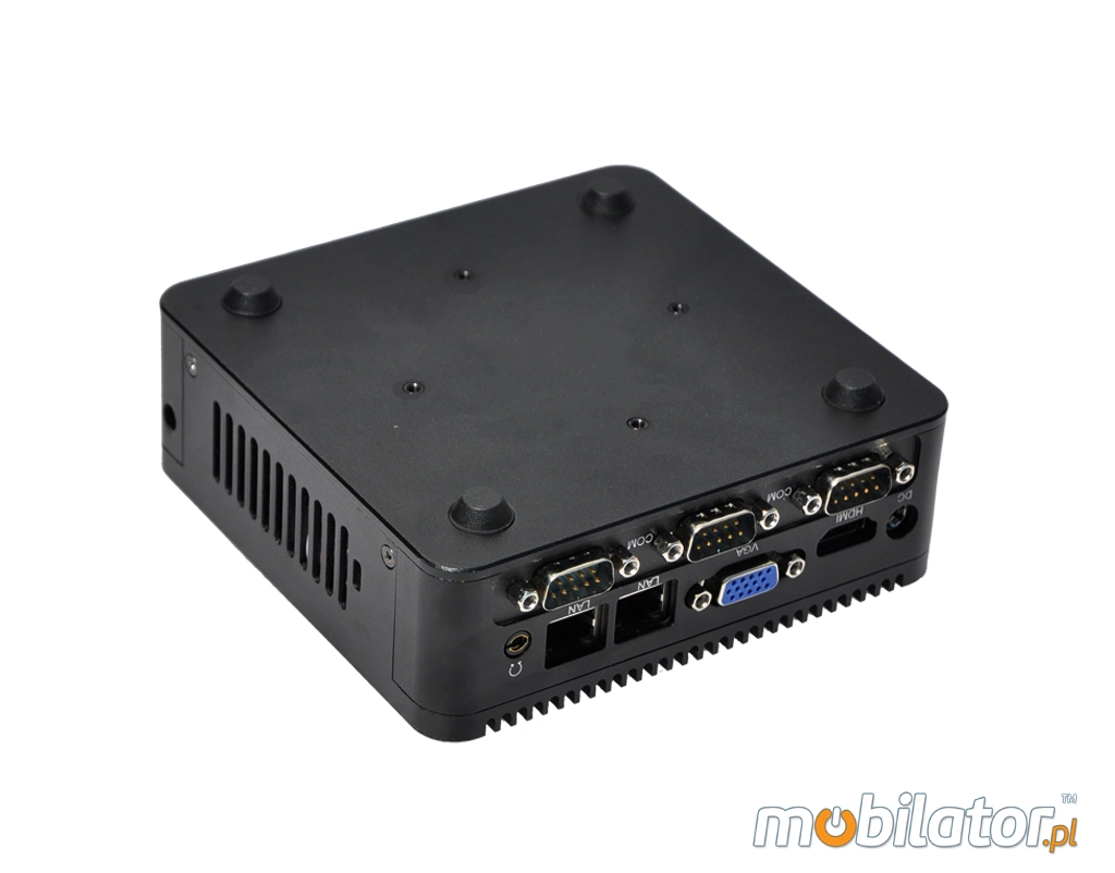 Integrated card - Intel RTL8111E LAN (optional WiFi module) allow connection to the network. The computer is equipped with: two LAN port, four COM (RS232) port, one VGA output, three USB 2.0 ports, one USB 3.0 port, one HDMI output one way audio, one microphone input.