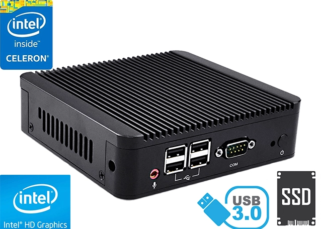 Using the latest technology Digital Engine (industrial fanless MiniPC) is designed for continuous multitasking operating with low power consumption. An important advantage is the effective combination of small size with considerable opportunities through the use of Intel's processor family, Intel chipset and 2/4GB DDR3 memory. Integrated Intel HD Graphics video and audio Realtek ALC662 allow you to play a wide range of applications and media files (video, audio) - in Full HD quality. Disks offer free space 16GB/32GB/64GB/128GB SSD.