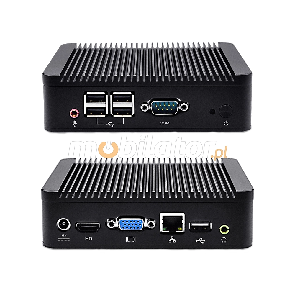 The Industrial Computer Fanless MiniPC mBOX Nuc Q220N uses a special method of cooling. This cooling takes place mainly by means of housing having a very large surface (longitudinal lamells, ribs) - for heat dissipation. Fan used inside the computer is designed to rapidly drain hot air from the CPU, allowing MiniPC to reach more efficiently and faster cooling.
