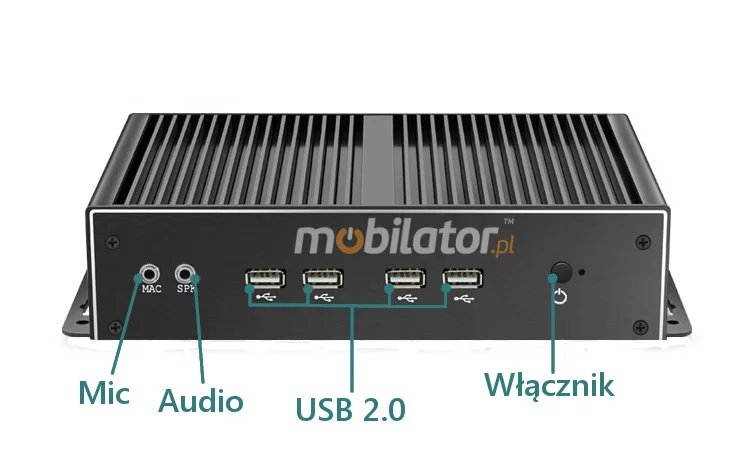 The industrial Mini PC uses a proven cooling system, based only on solid elements, mainly heat sinks. The system uses the phenomenon of metals passing thermal energy into the environment - there are no additional moving elements in the form of eg fans. This solution ensures noiseless operation, lower failure rate and greater protection against dust and other dirt while reducing the amount of energy consumed.