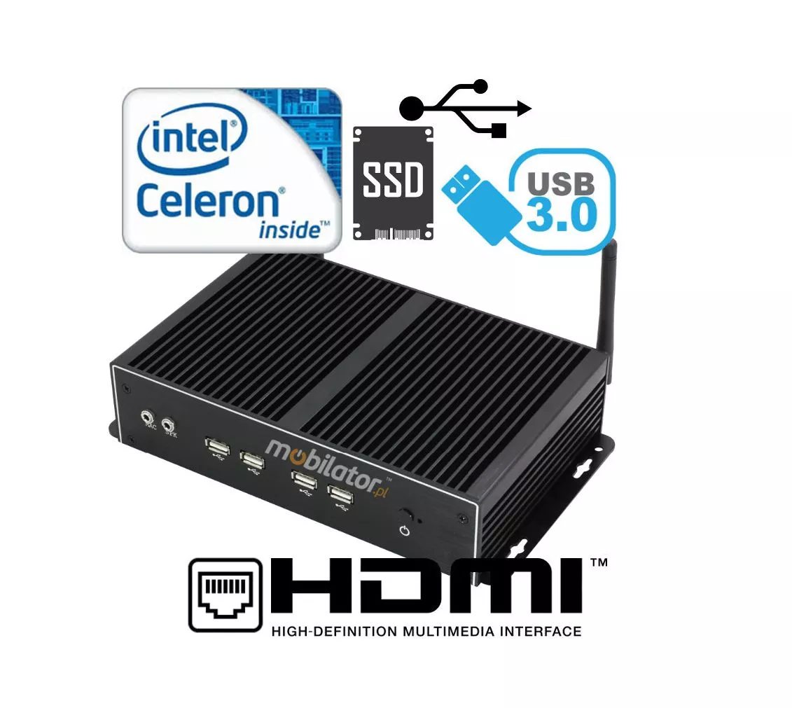 The industrial Mini PC uses a proven cooling system, based only on solid elements, mainly heat sinks. The system uses the phenomenon of metals passing thermal energy into the environment - there are no additional moving elements in the form of eg fans. This solution ensures noiseless operation, lower failure rate and greater protection against dust and other dirt while reducing the amount of energy consumed.