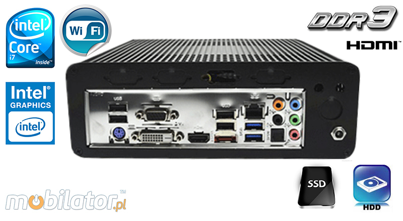 Using the latest technology Digital Engine (industrial fanless MiniPC) is designed for continuous multitasking operating with low power consumption. An important advantage is the effective combination of small size with considerable opportunities through the use of Intel's processor family, Intel chipset and DDR3 memory. Integrated Intel HD Graphics 4600 video and audio Realtek ALC892 allow you to play a wide range of applications and media files (video, audio) - in Full HD quality. Disks offer free space 128GB SSD.
